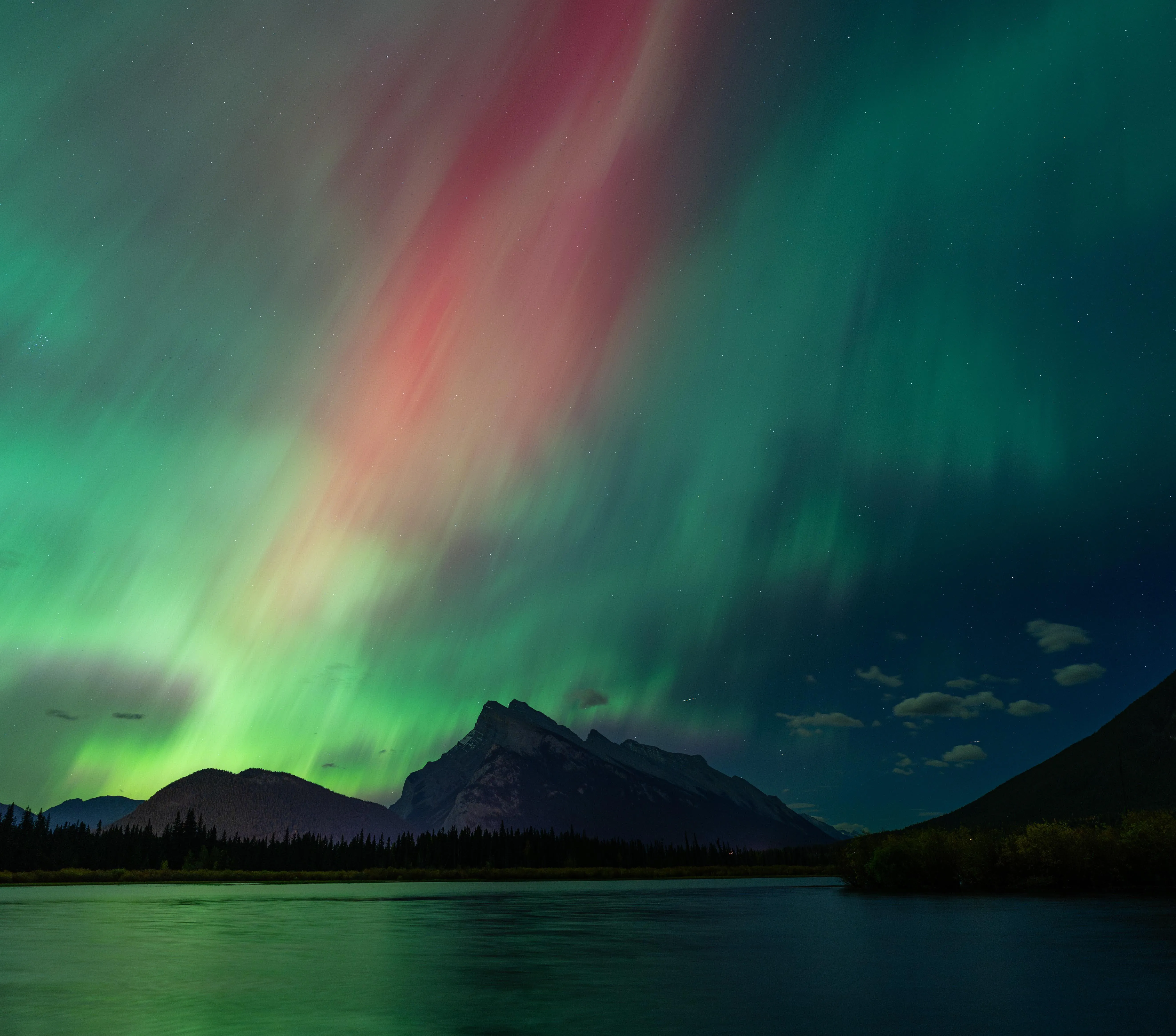 海 极光 风景 云 夜 森林 星星 天空 弱光 4K壁纸