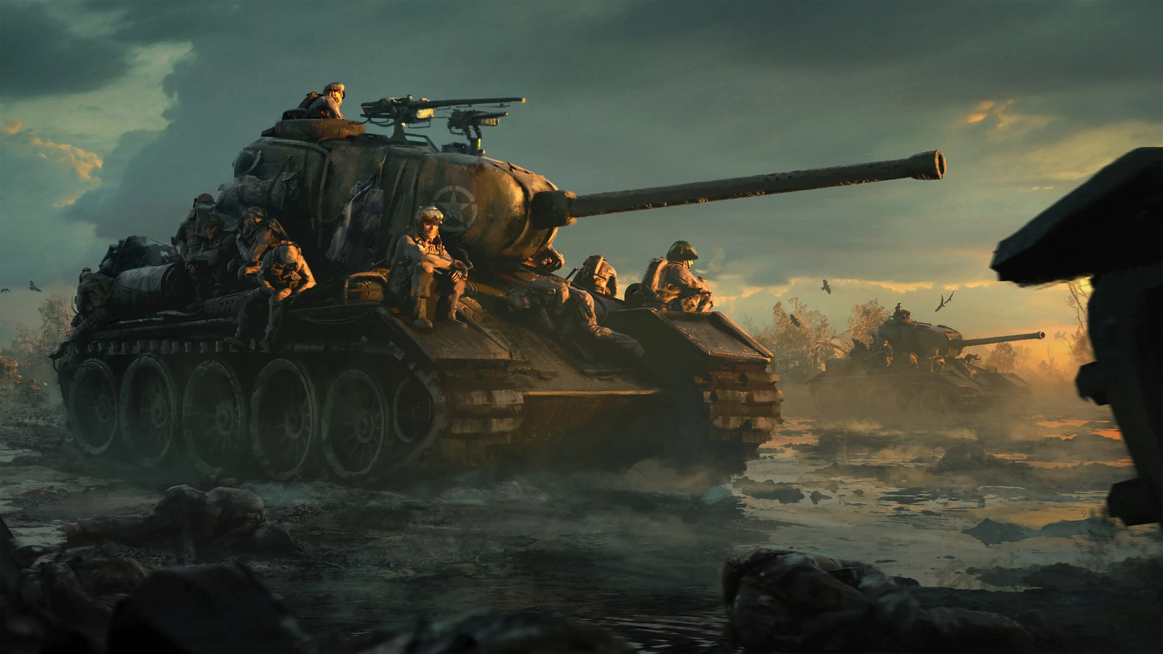 AI艺术创作 智能元素 坦克、AI艺术 主题壁纸 适合战争场景 4K壁纸 视觉效果出众
