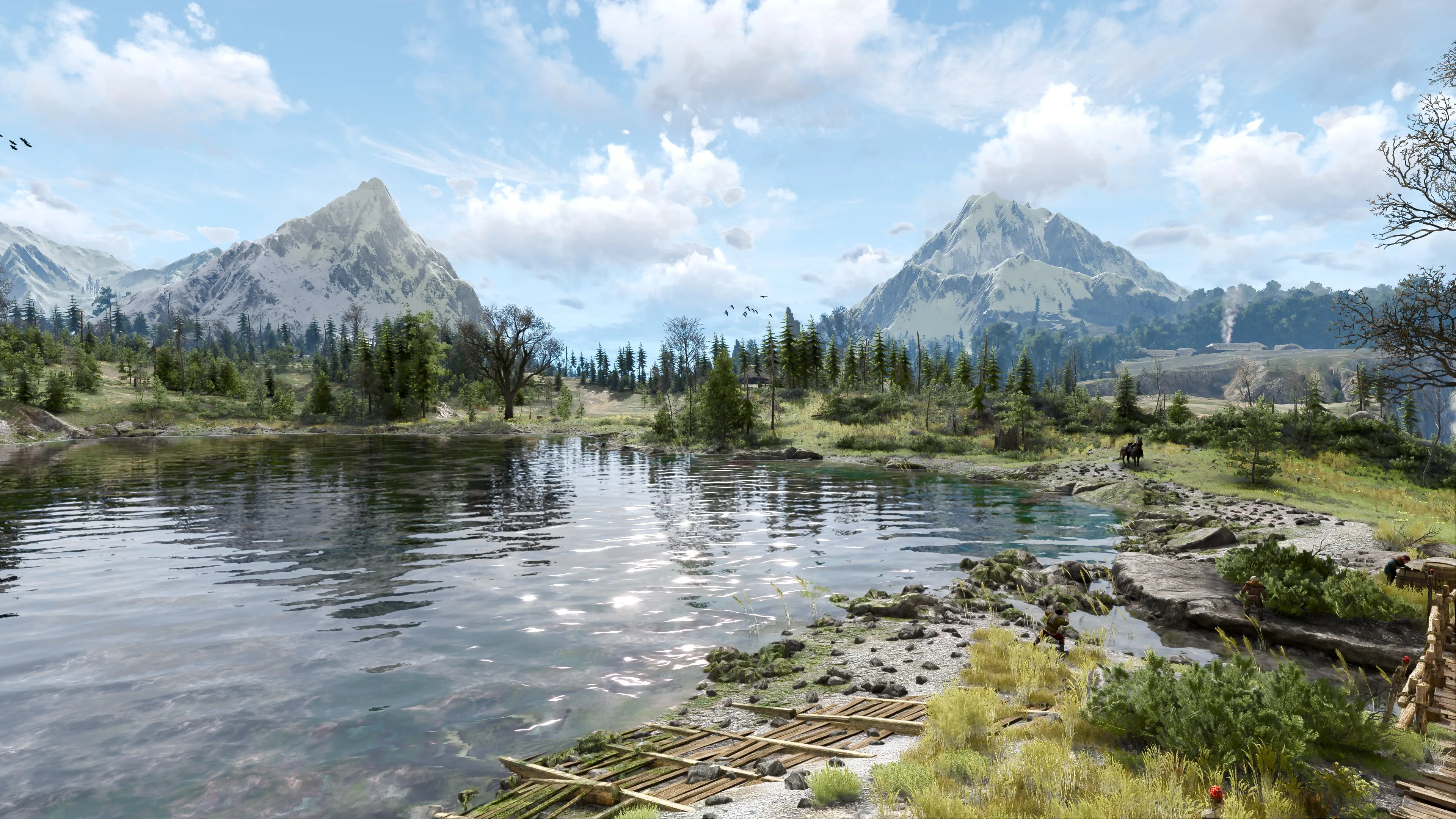 巫师 狂野狩猎 水 游戏CG 树 天空 云 雪 山 自然 风景 4K壁纸