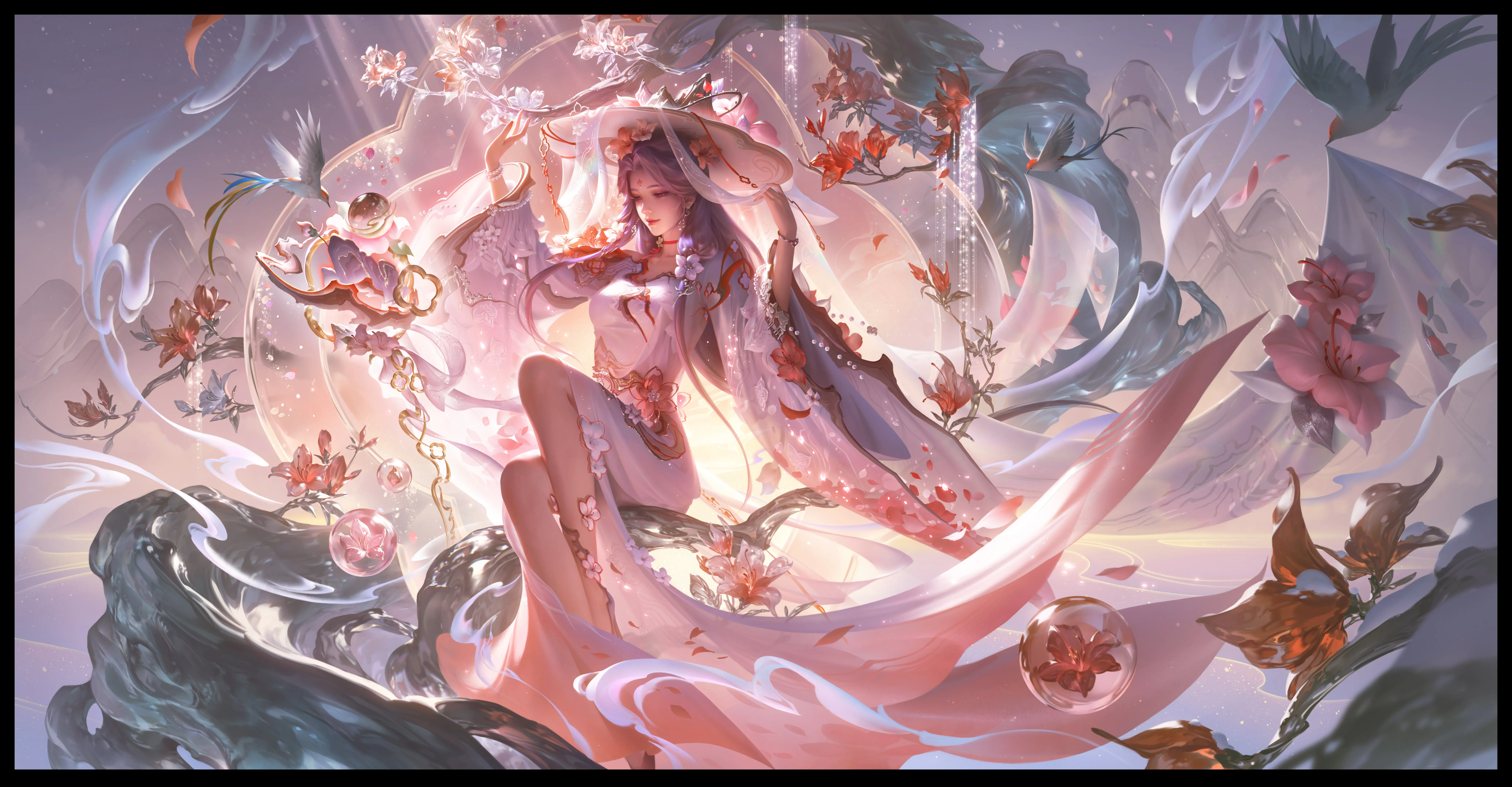 王兆军 电子 游戏 人物 粉色头发 女孩 蓝眼睛 帽子 女人 长发 长袖 耳环 项链 帽子 花 头发 8K壁纸