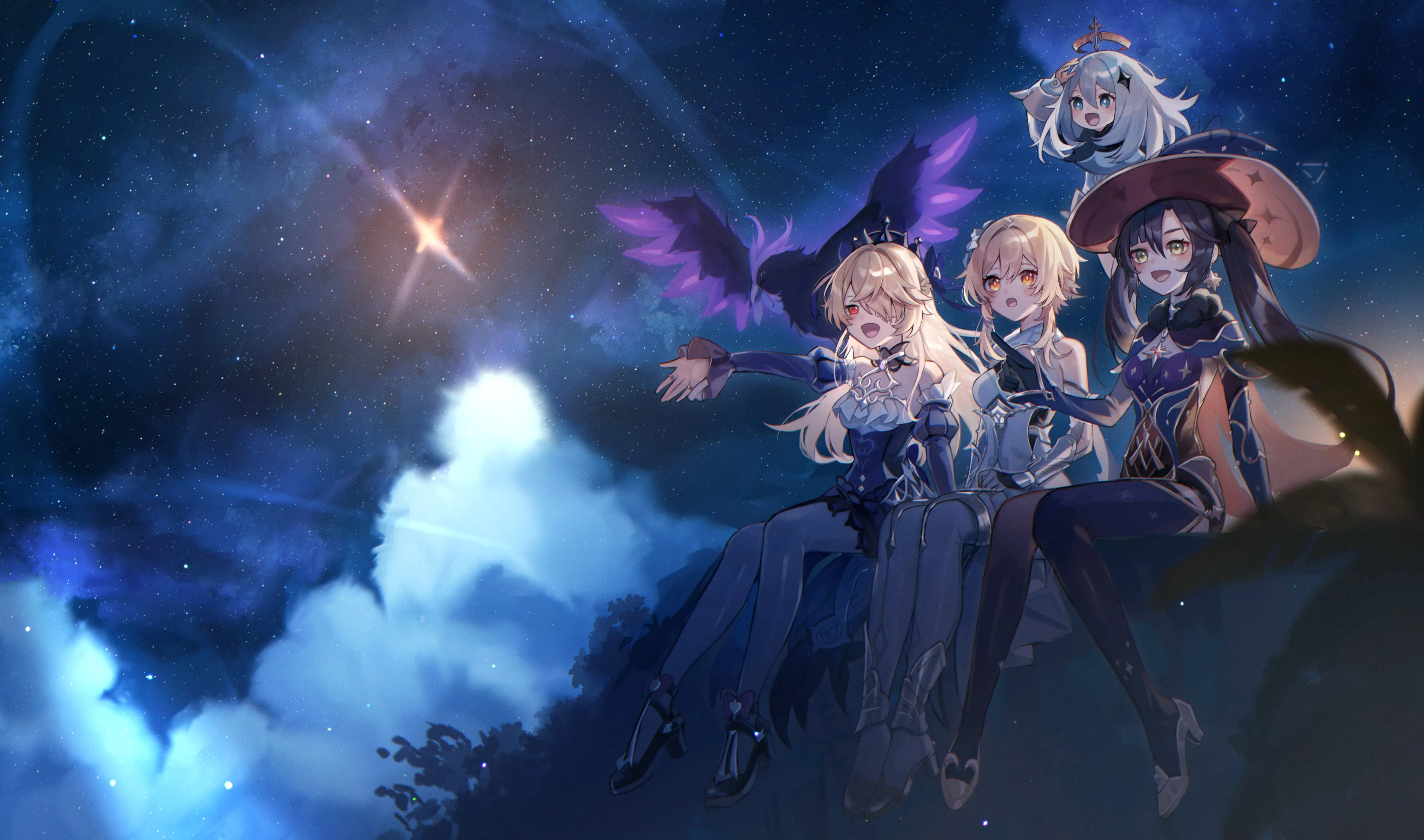 原神 夜晚 星星 动漫 女孩 星夜 可爱 萝莉 电脑壁纸 4K壁纸