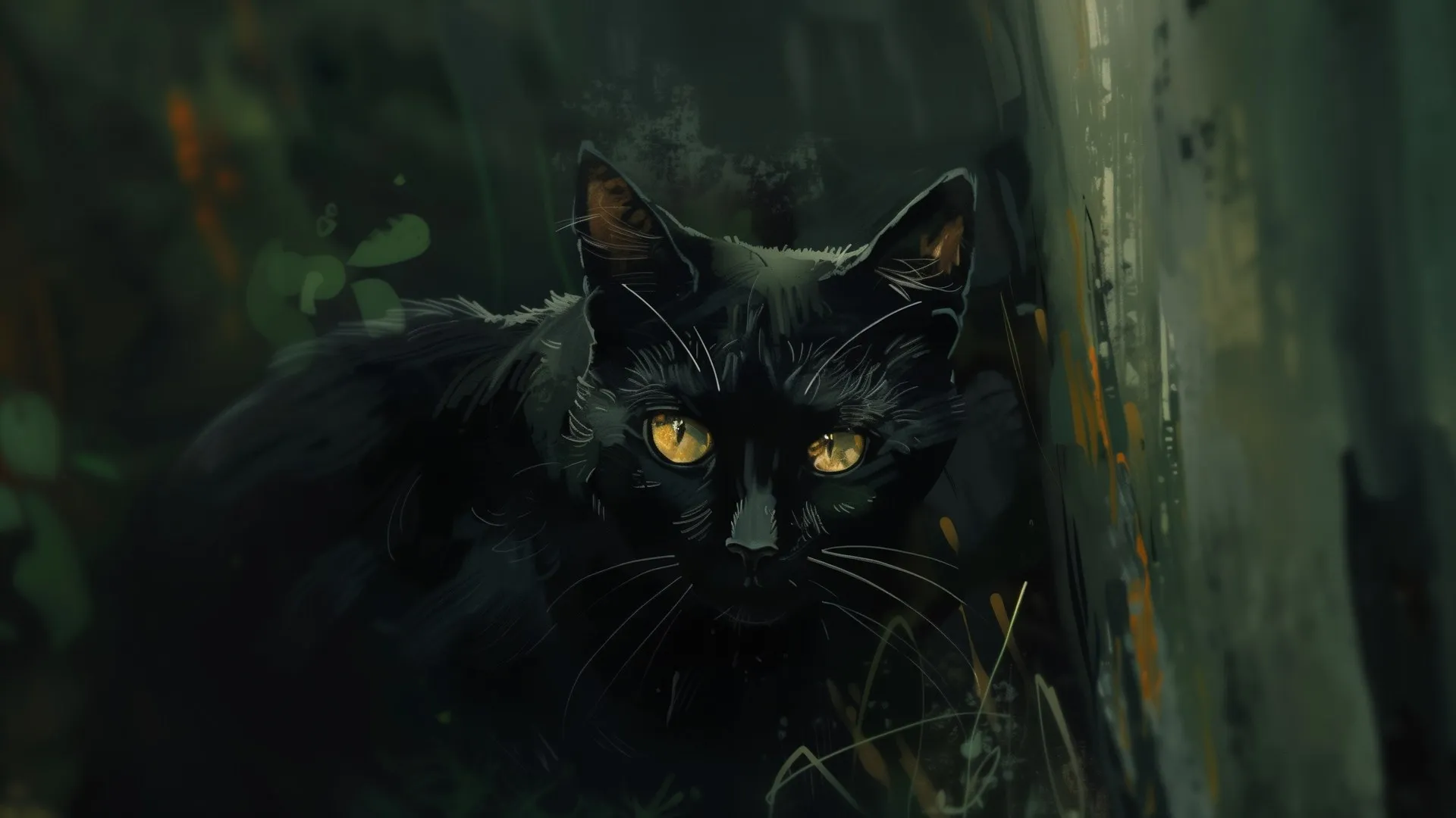 AI艺术 插图 黑色 猫 绘画 电脑壁纸 4K壁纸