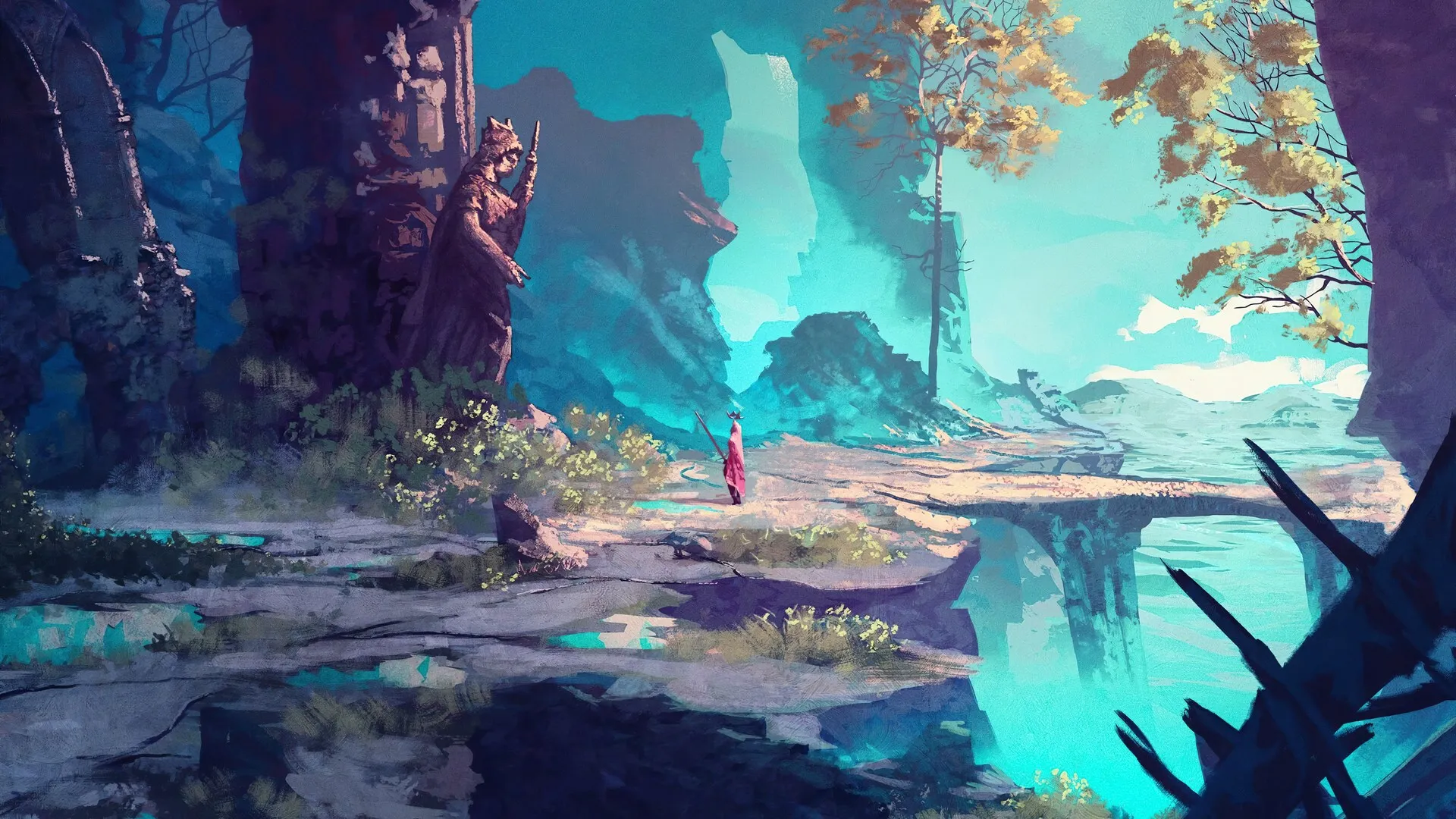 AI艺术 绘画 雕像 树木 路径 青色  电脑壁纸 4K壁纸