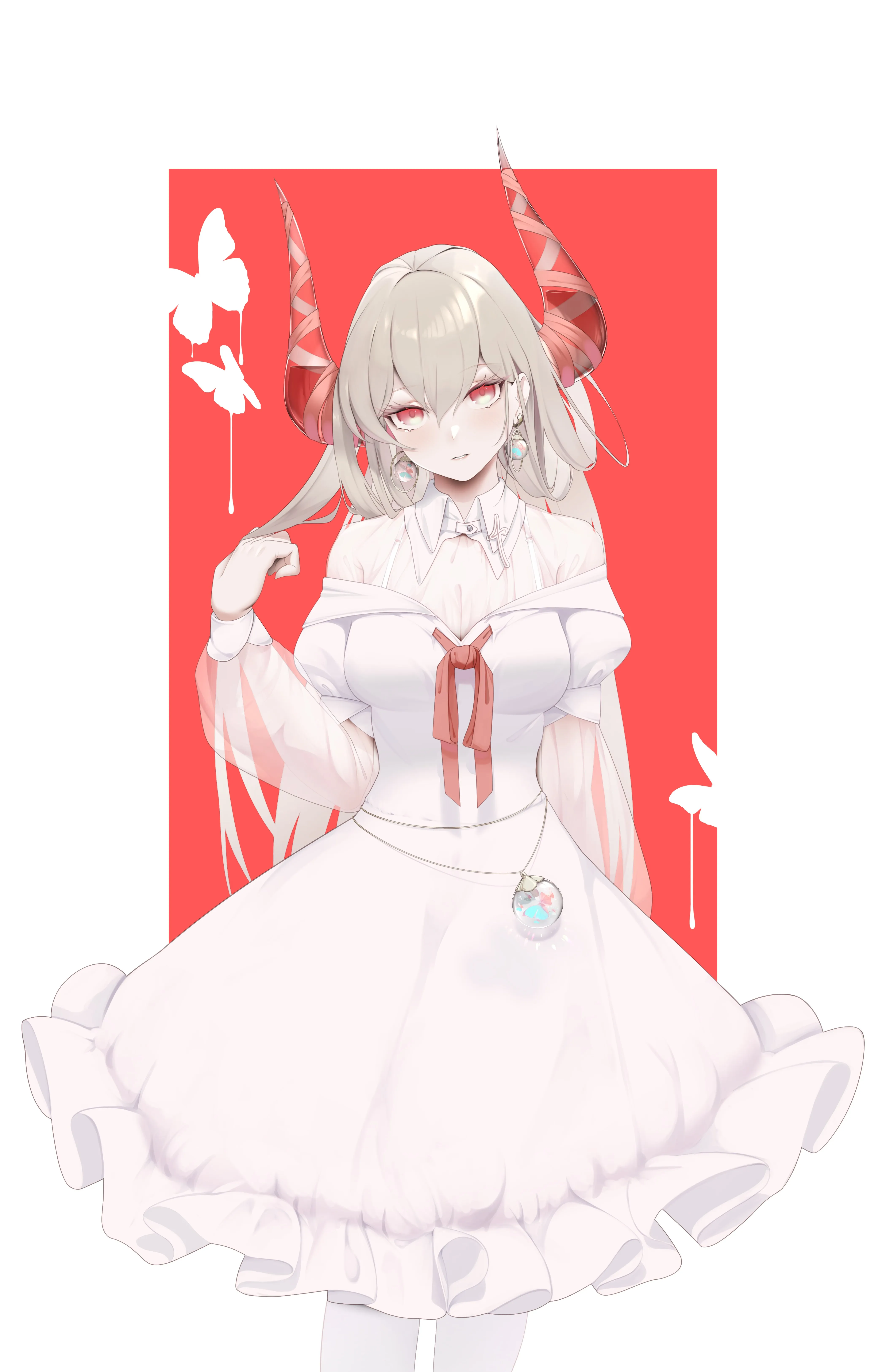 原创 人物 红眼睛 动漫 女孩 角 灰色头发 连衣裙 手机壁纸 4K壁纸