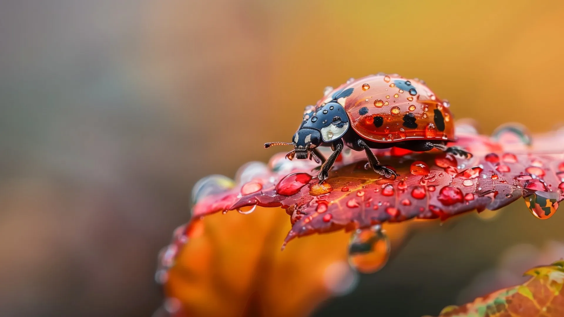 AI艺术 瓢虫 露水 树叶   电脑壁纸 4K壁纸