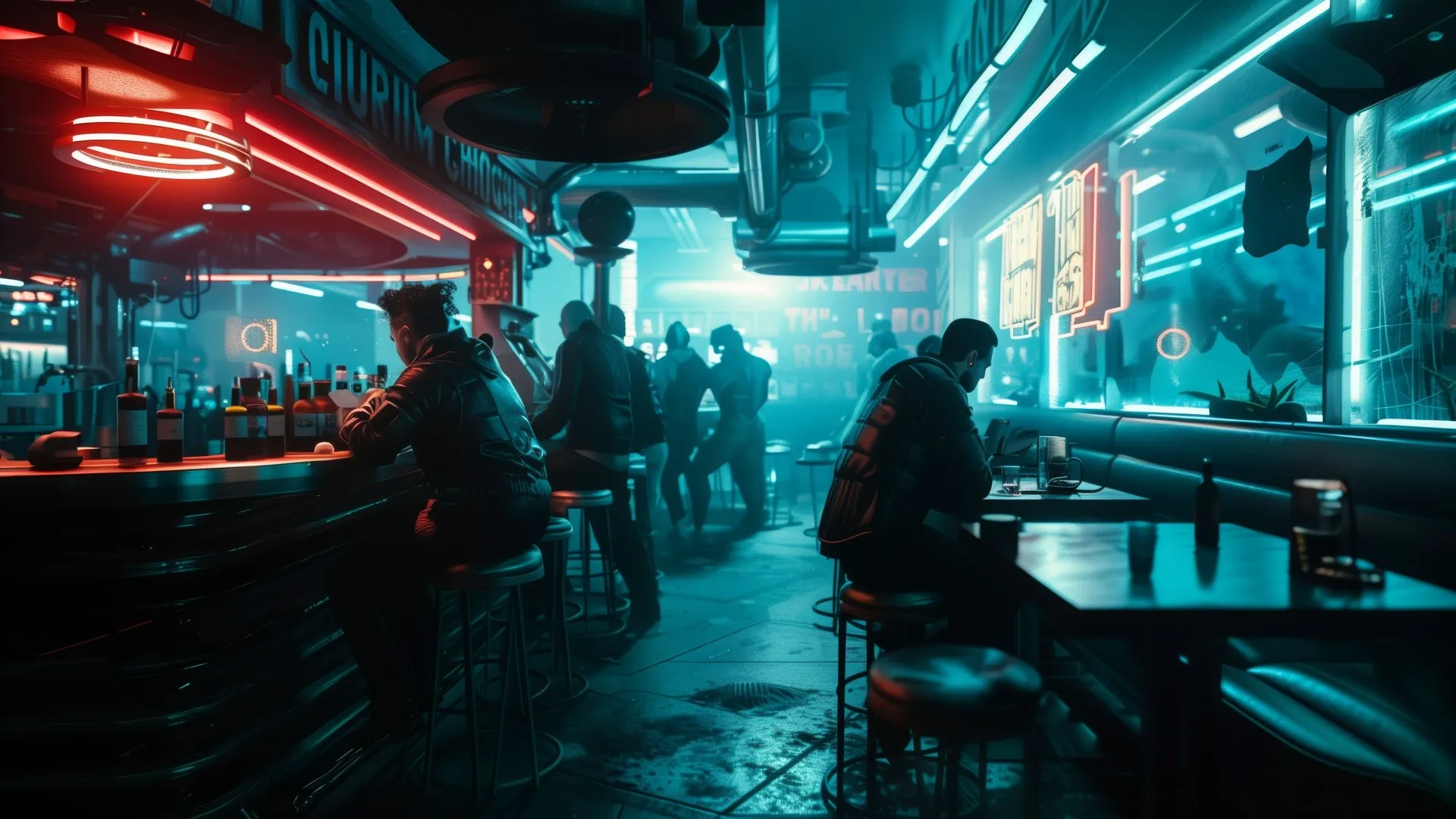 AI艺术 未来主义 赛伯朋克 科幻 霓虹灯 酒吧 黑暗 电脑壁纸 4K壁纸