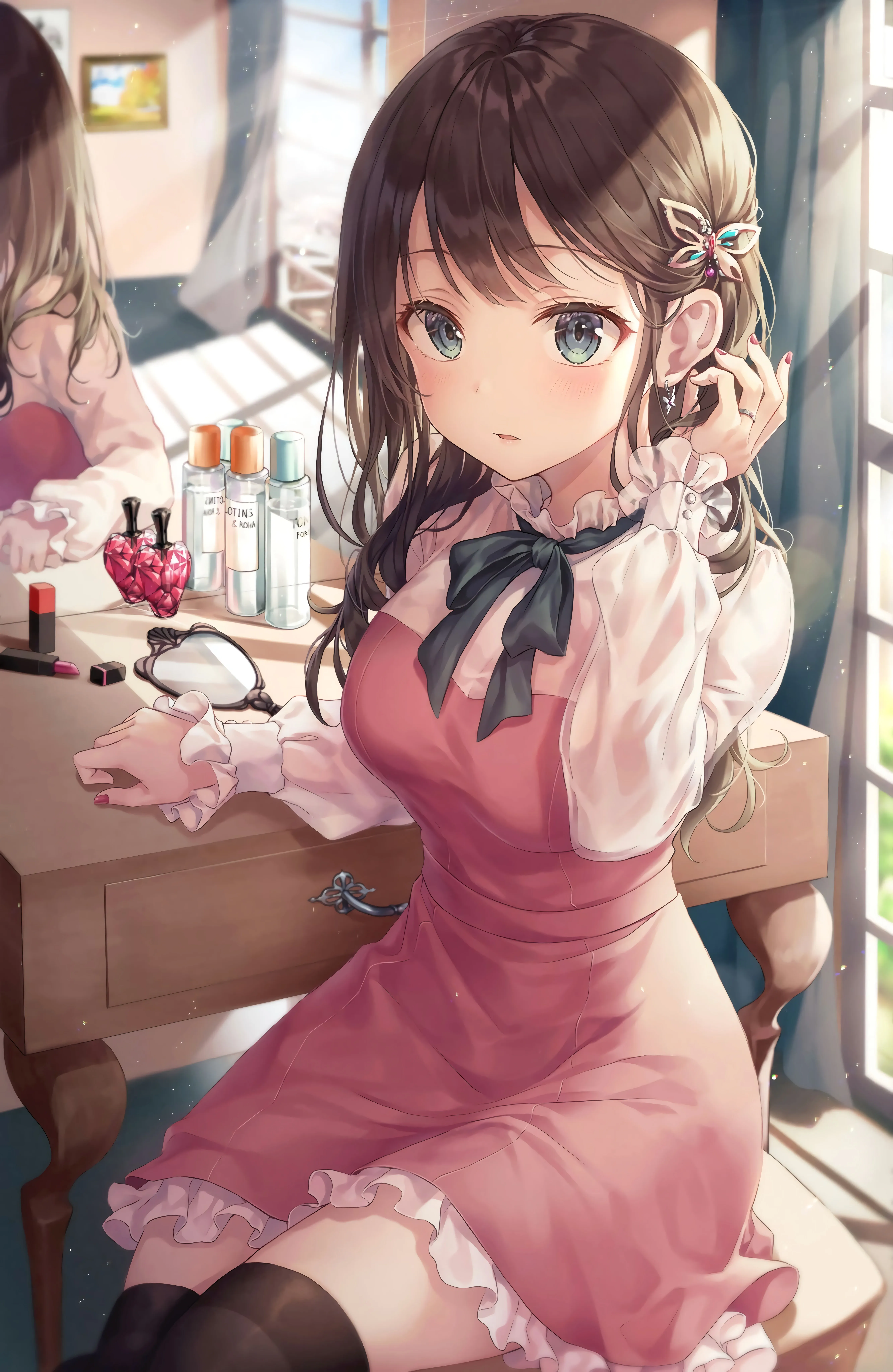 黑发 蓝眼睛 动漫 女孩 连衣裙 大腿高 手机壁纸 4K壁纸