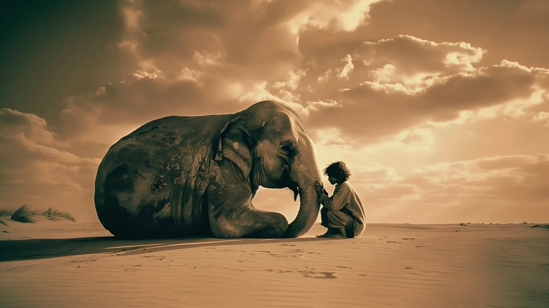 儿童 人工智能艺术 大象 沙子  电脑壁纸 4K壁纸