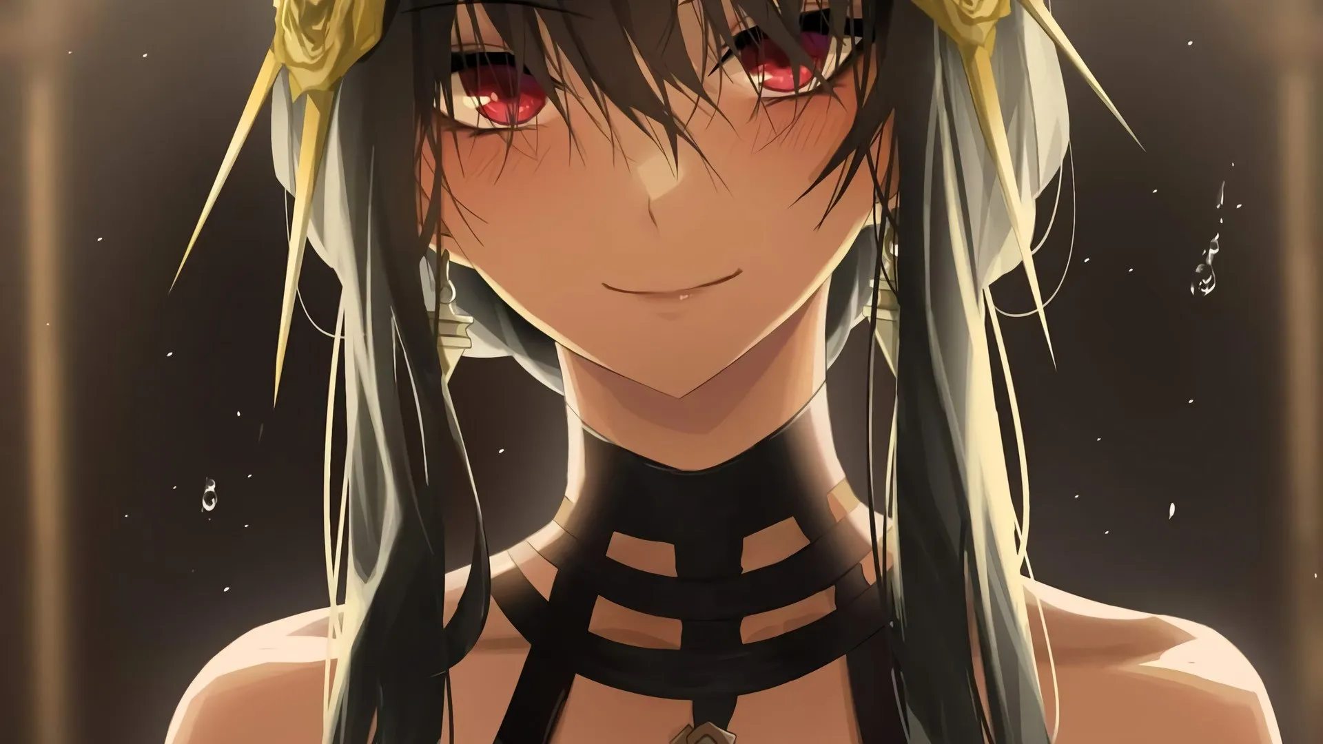 黑头发 红眼睛 微笑 动漫 动漫女孩 黑发 手机壁纸 4K壁纸