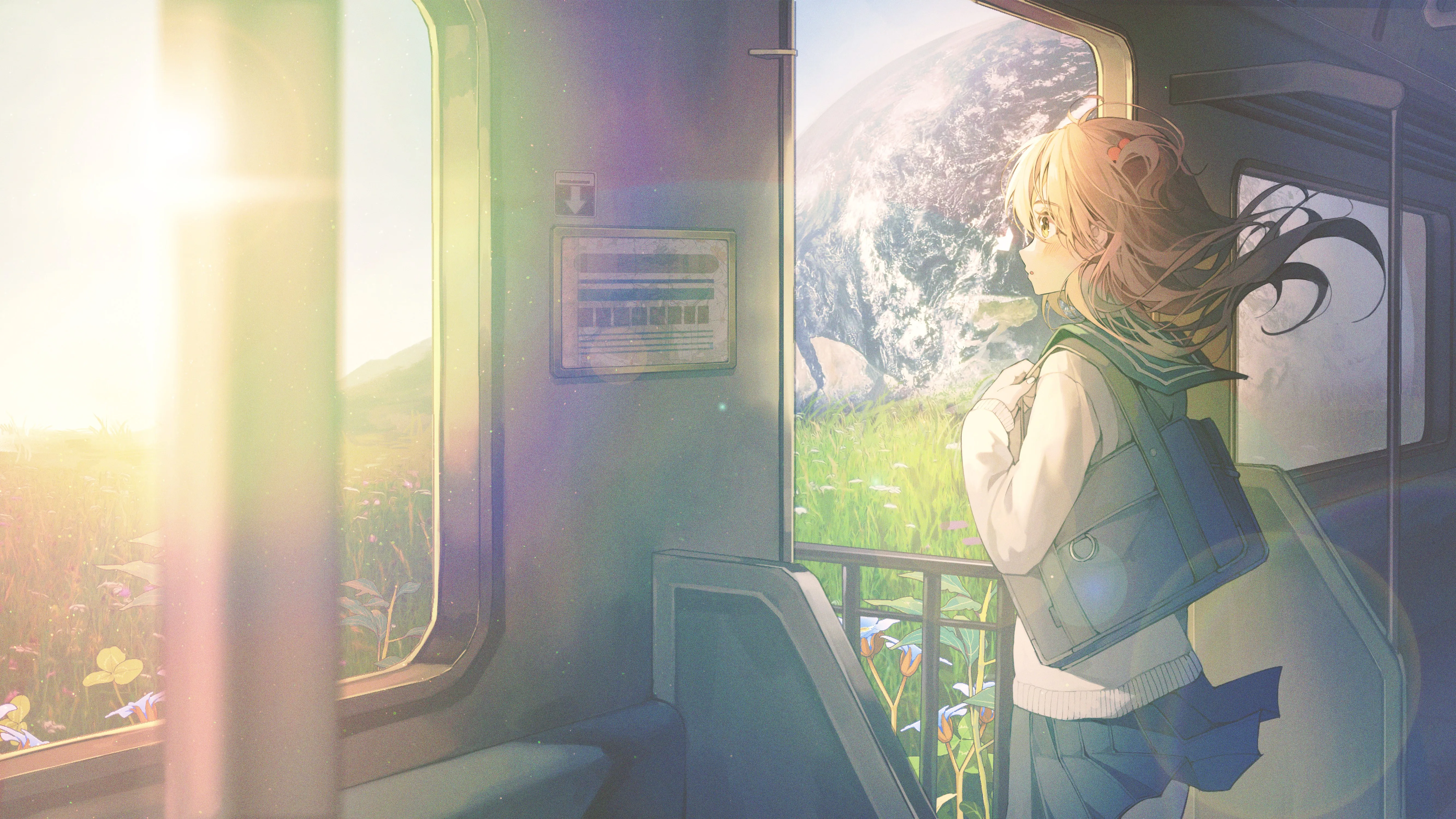 动漫 动漫 动漫女孩 校服 火车 风景 4K壁纸