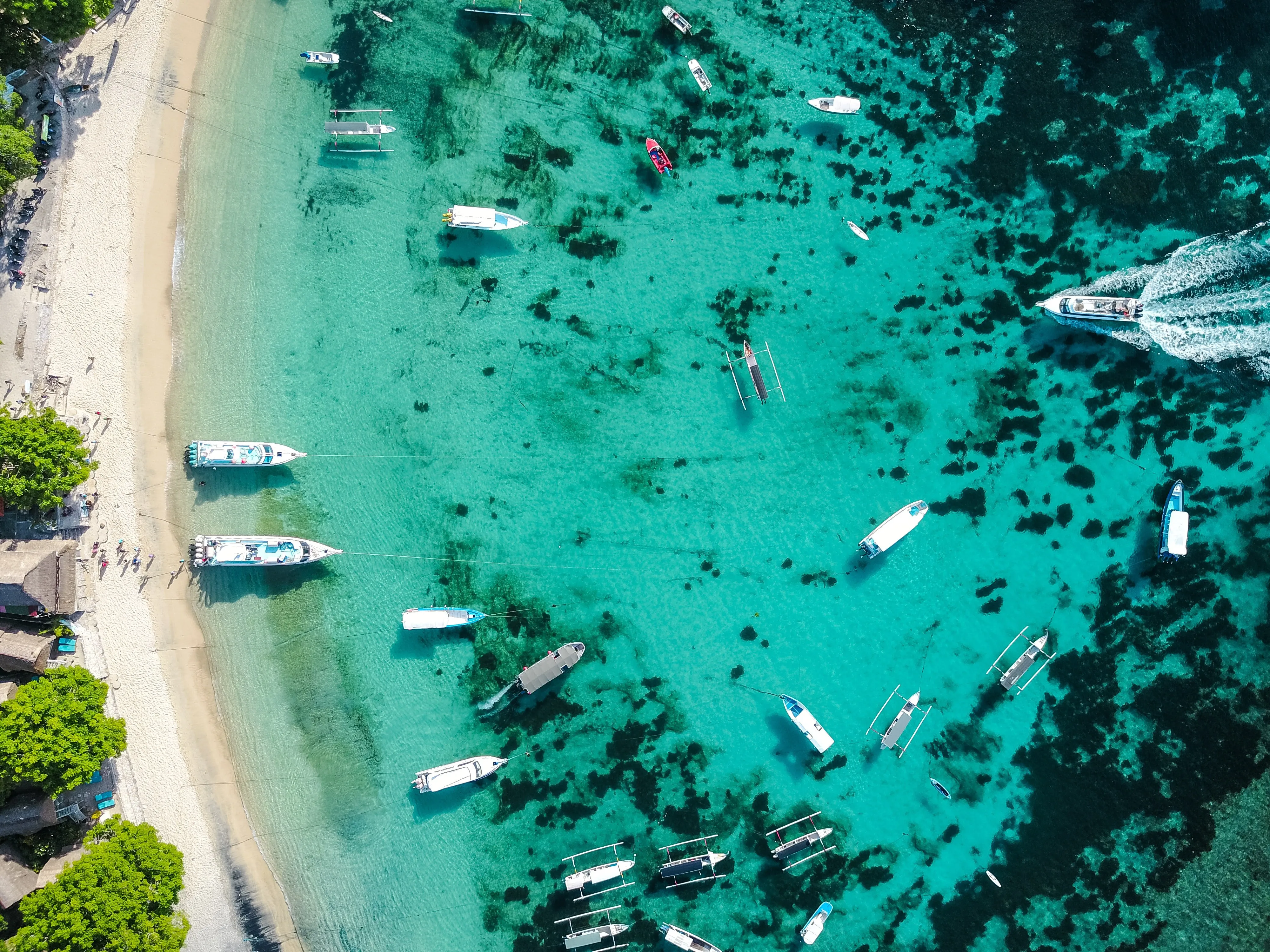 自然 船 海滩 树 海 鸟瞰  电脑壁纸 4K壁纸