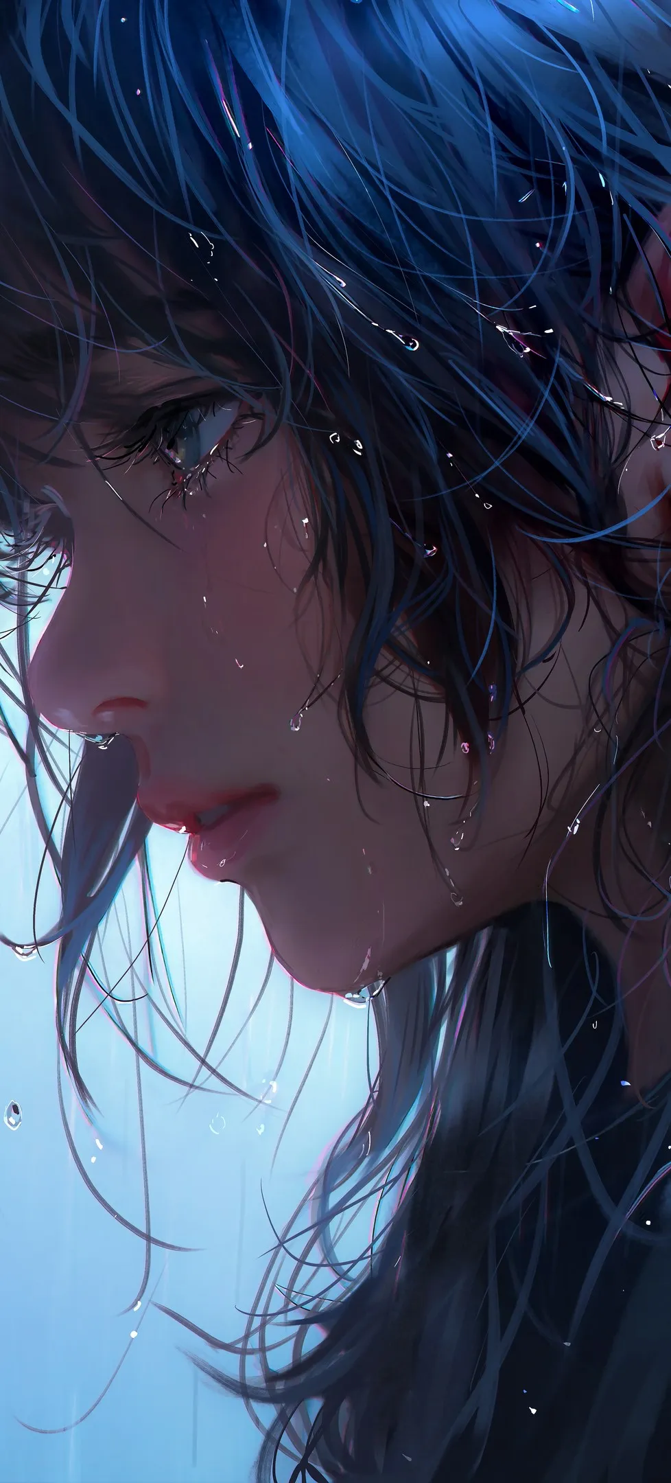 女人 紫色头发 头发 长发 特写 水滴 动漫 原图 肖像 数码艺术 粉丝艺术 手机壁纸 4K壁纸