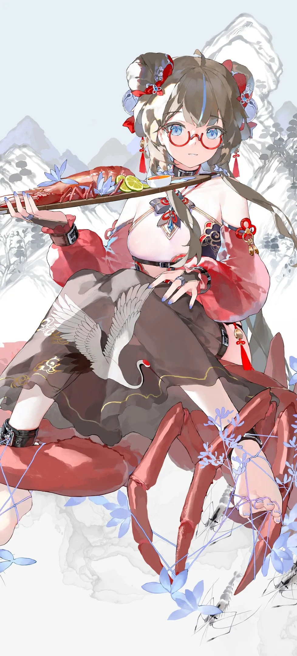 动漫 中国服装 山 红眼镜 龙虾 手机壁纸 4K壁纸