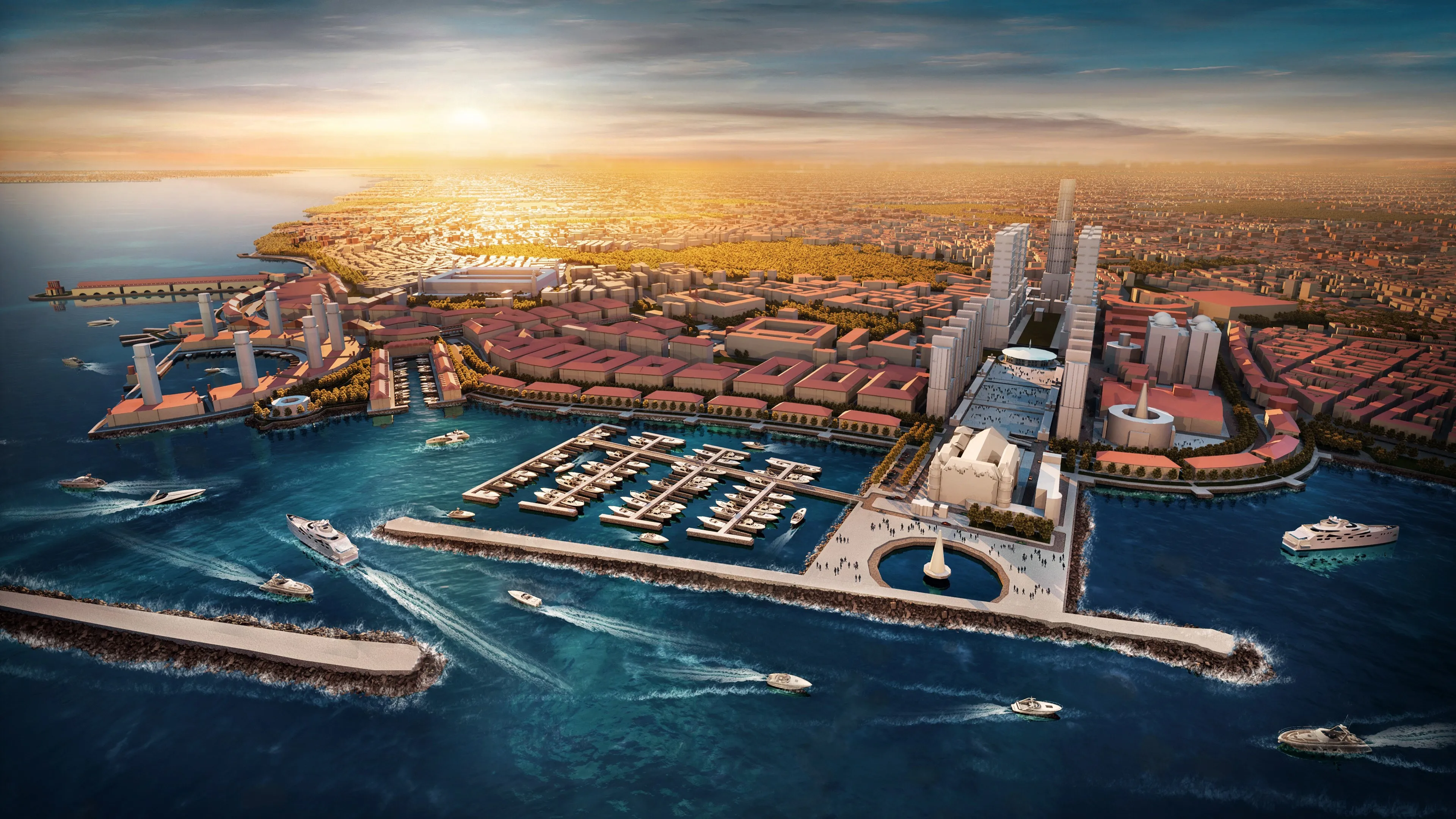 现代大气美4K绘画景观海 鸟瞰图 船 电脑壁纸