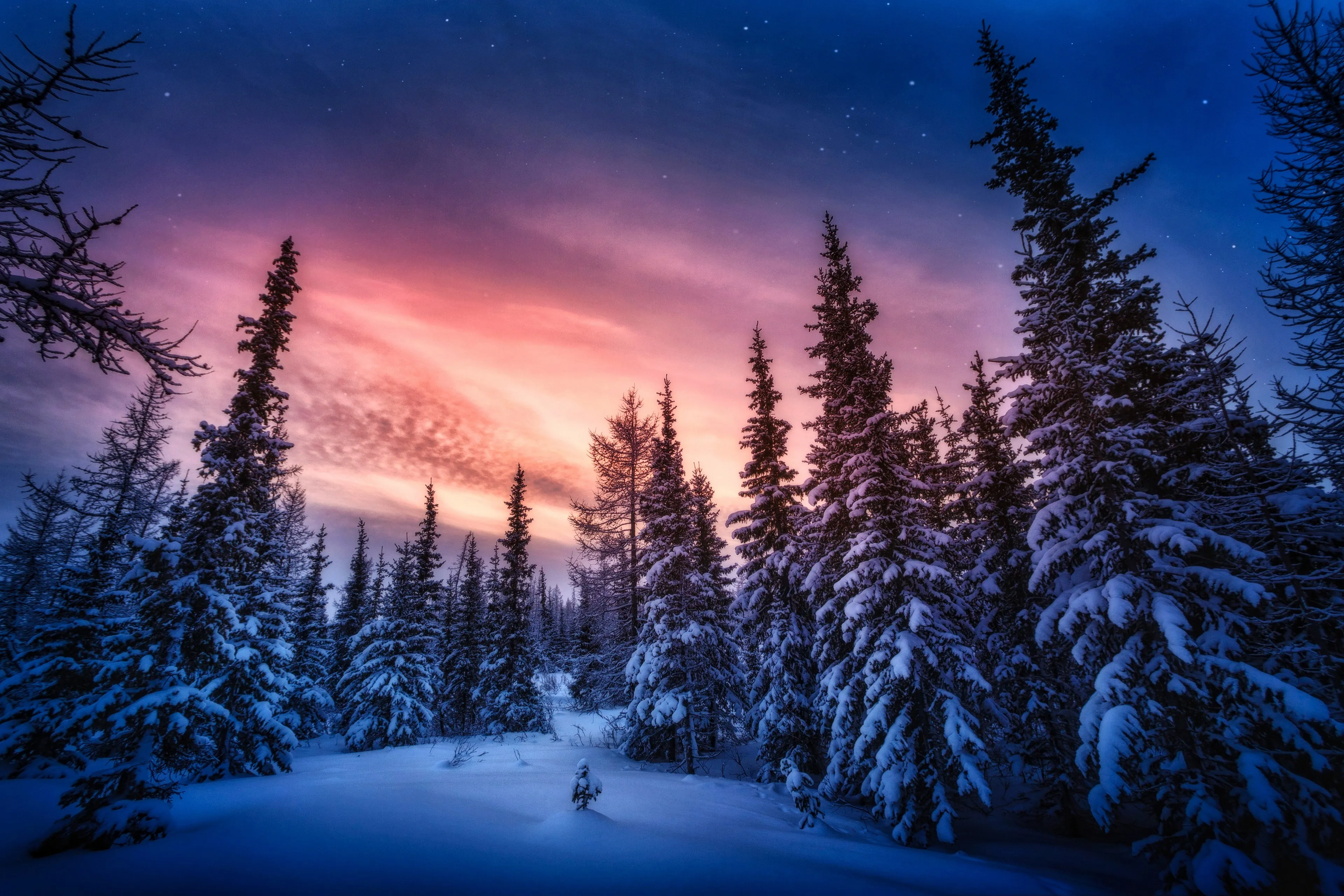 晶莹纯净美4K自然雪 森林 云 电脑壁纸