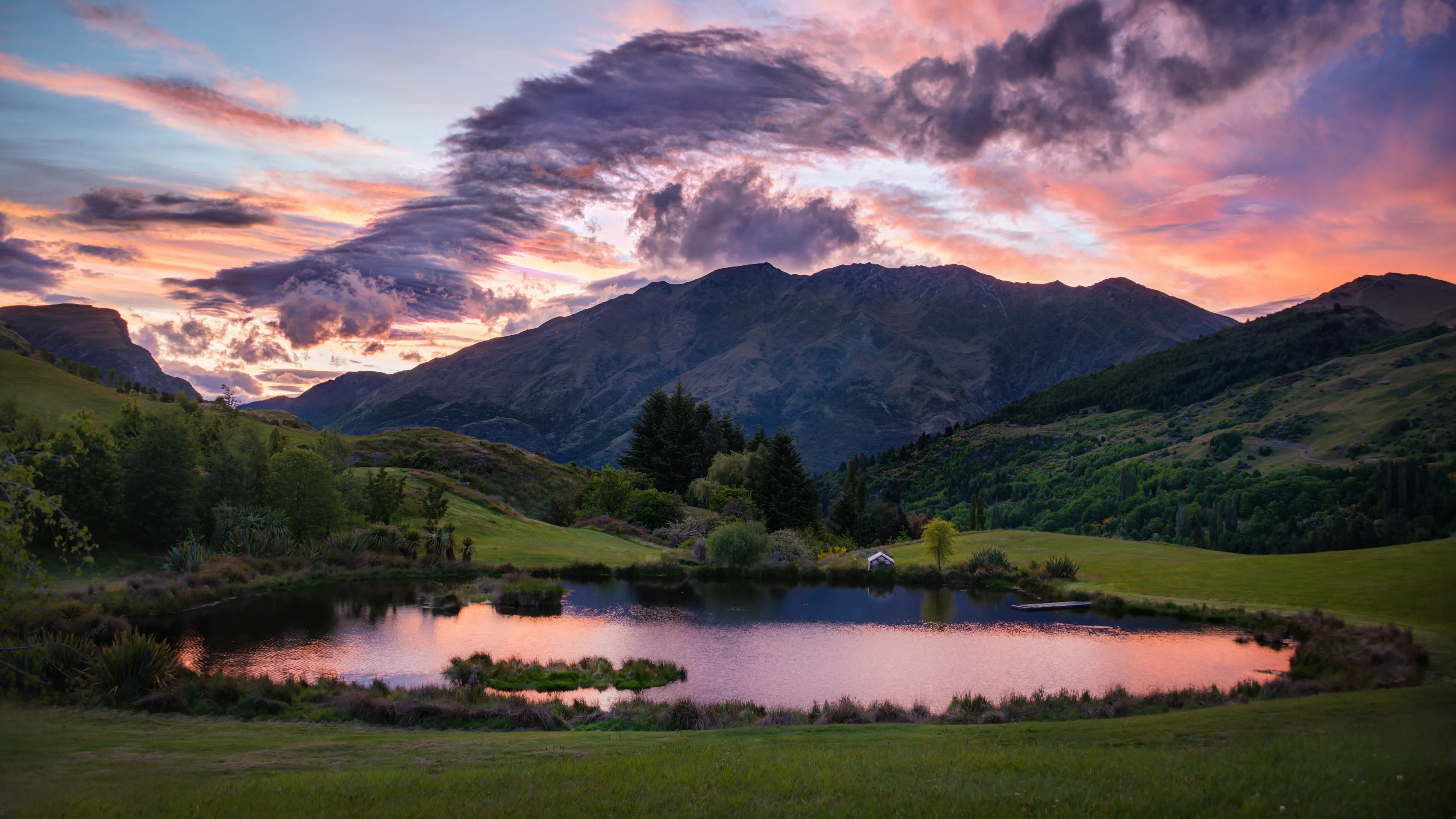 风景 自然 山 云 湖 水 树 夕阳辉光  4K壁纸