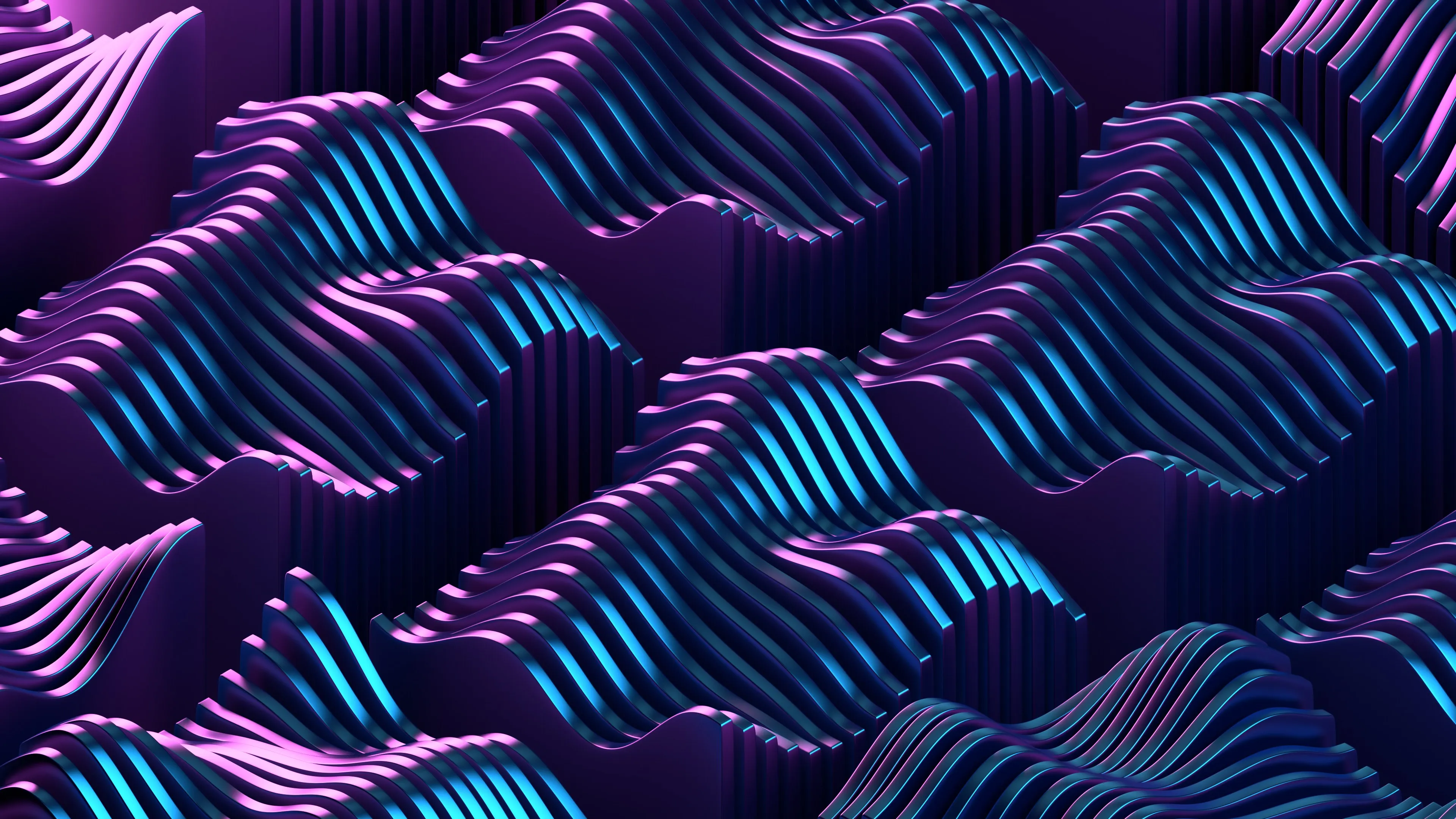 抽象 多彩 霓虹灯 现代 模式 蓝色 紫色 波浪 线条 几何 AI艺术 4K壁纸
