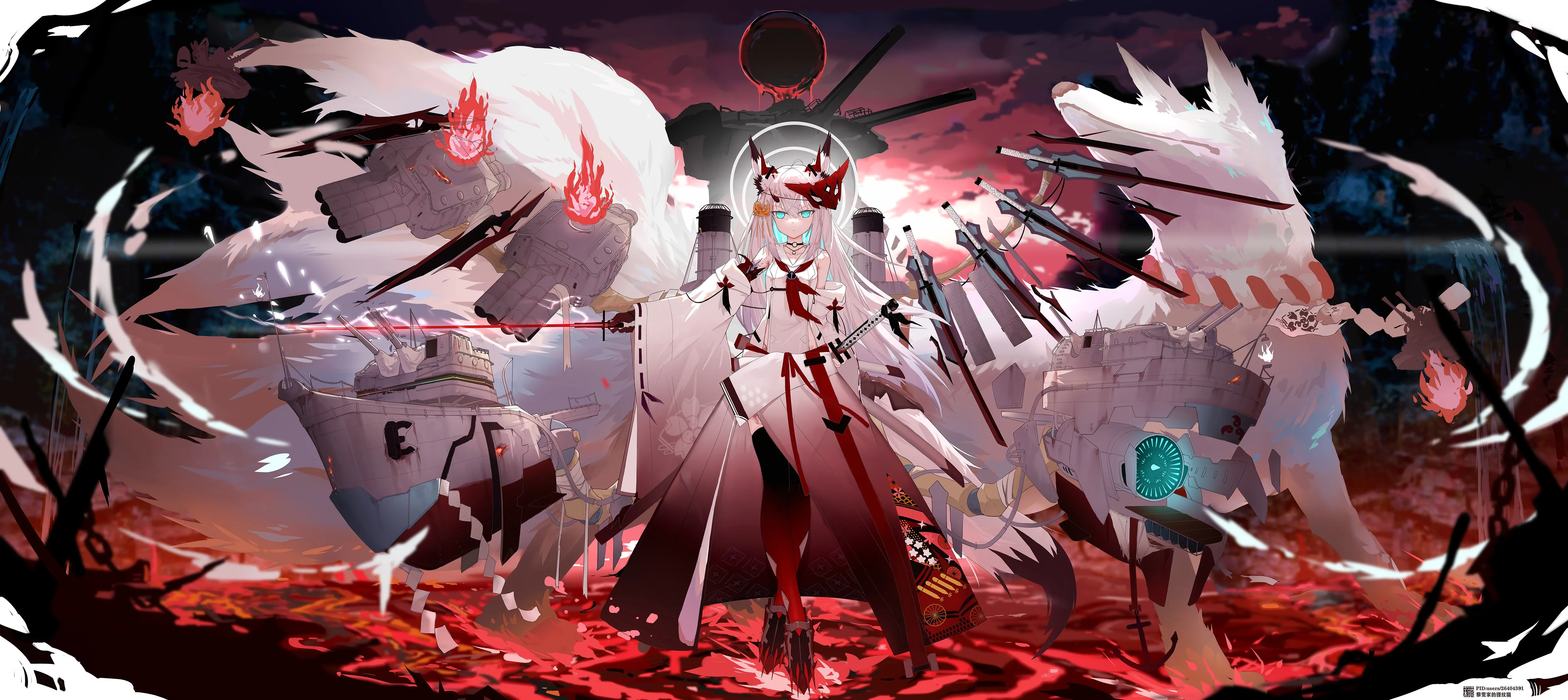 长发 狐狸耳朵 狐耳 狐狸尾巴 狐尾 动漫 女孩 狐狸少女 双色头发 动物 船 面具 项链 剑 4K壁纸