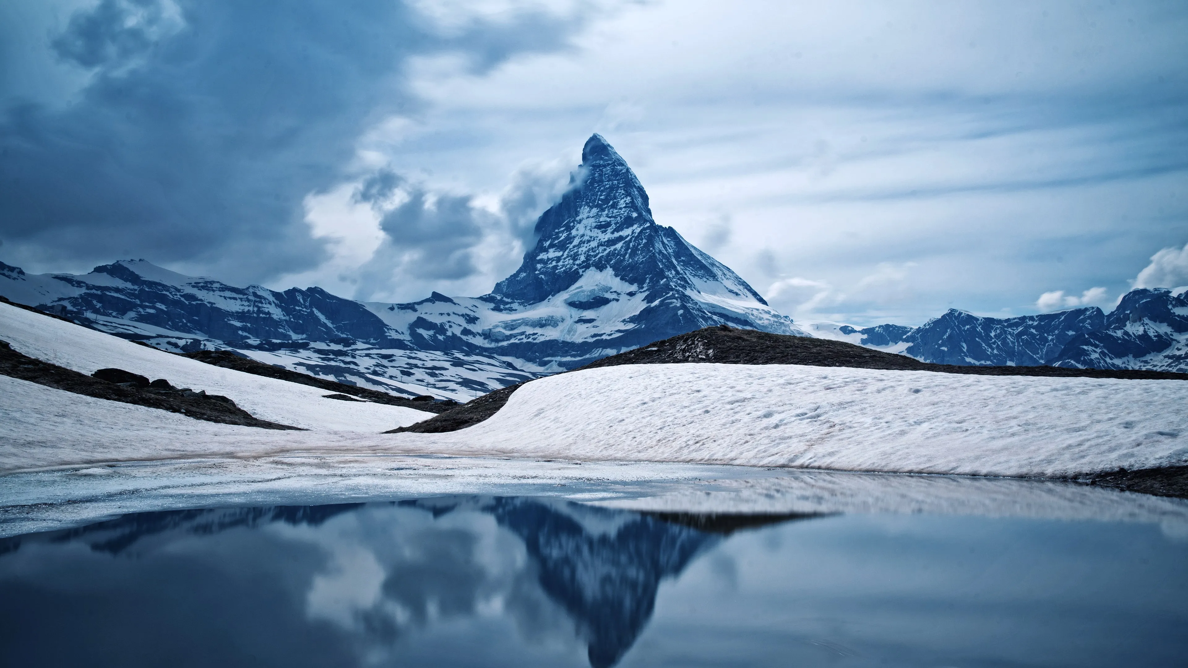 自然 景观 山脉 天空 云 冬季 雪 水 湖泊 岩石 4K壁纸