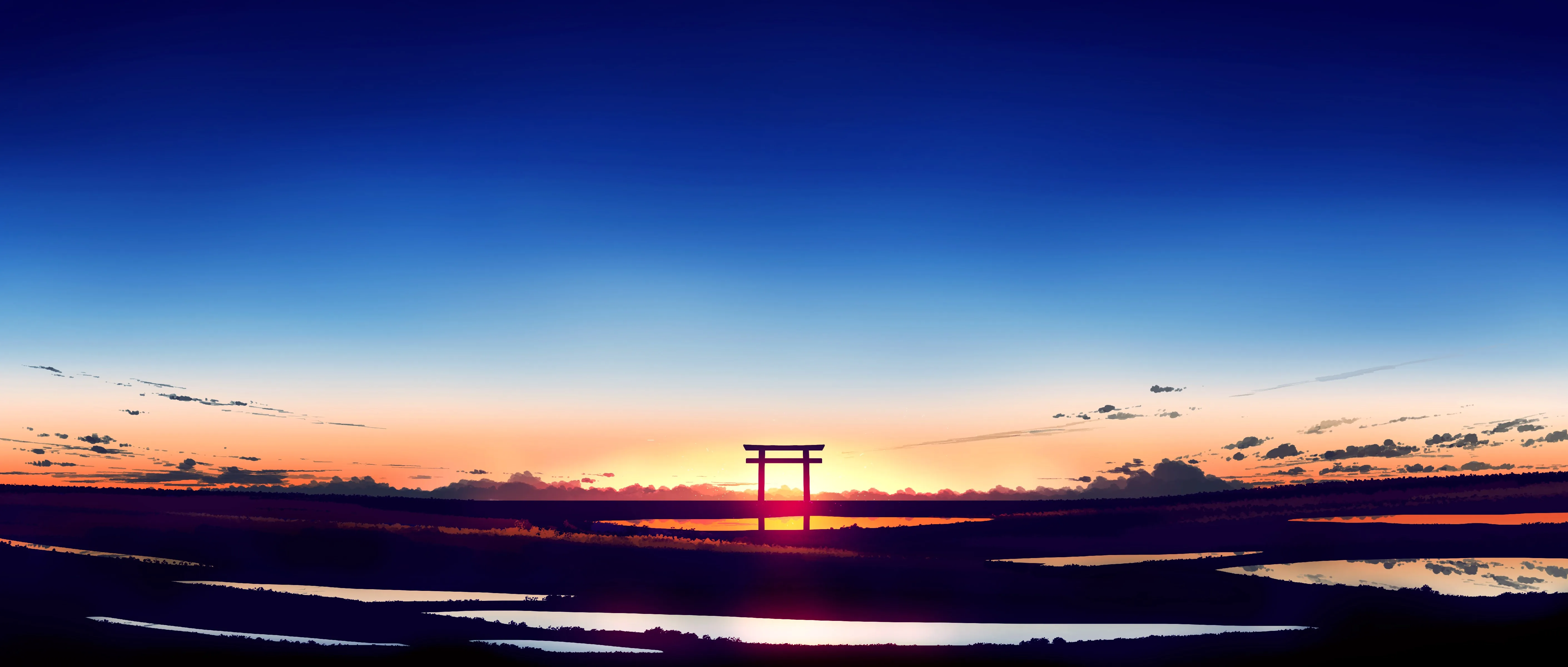创意独特美4K插图风景夕阳辉光 图片 云 电脑手机壁纸
