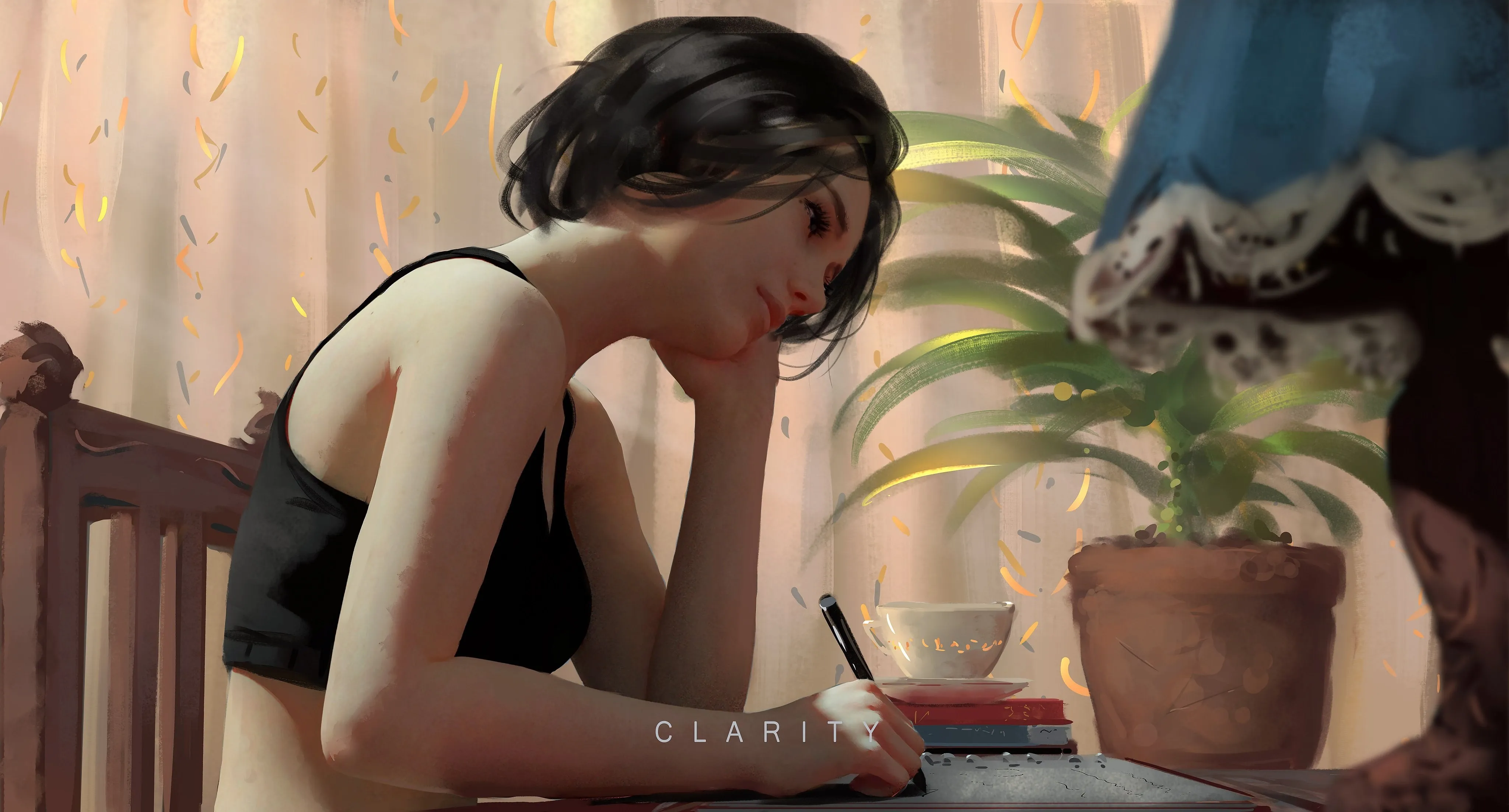 妇女 黑发 原创 人物 AI艺术 植物 露脐上衣 4K壁纸