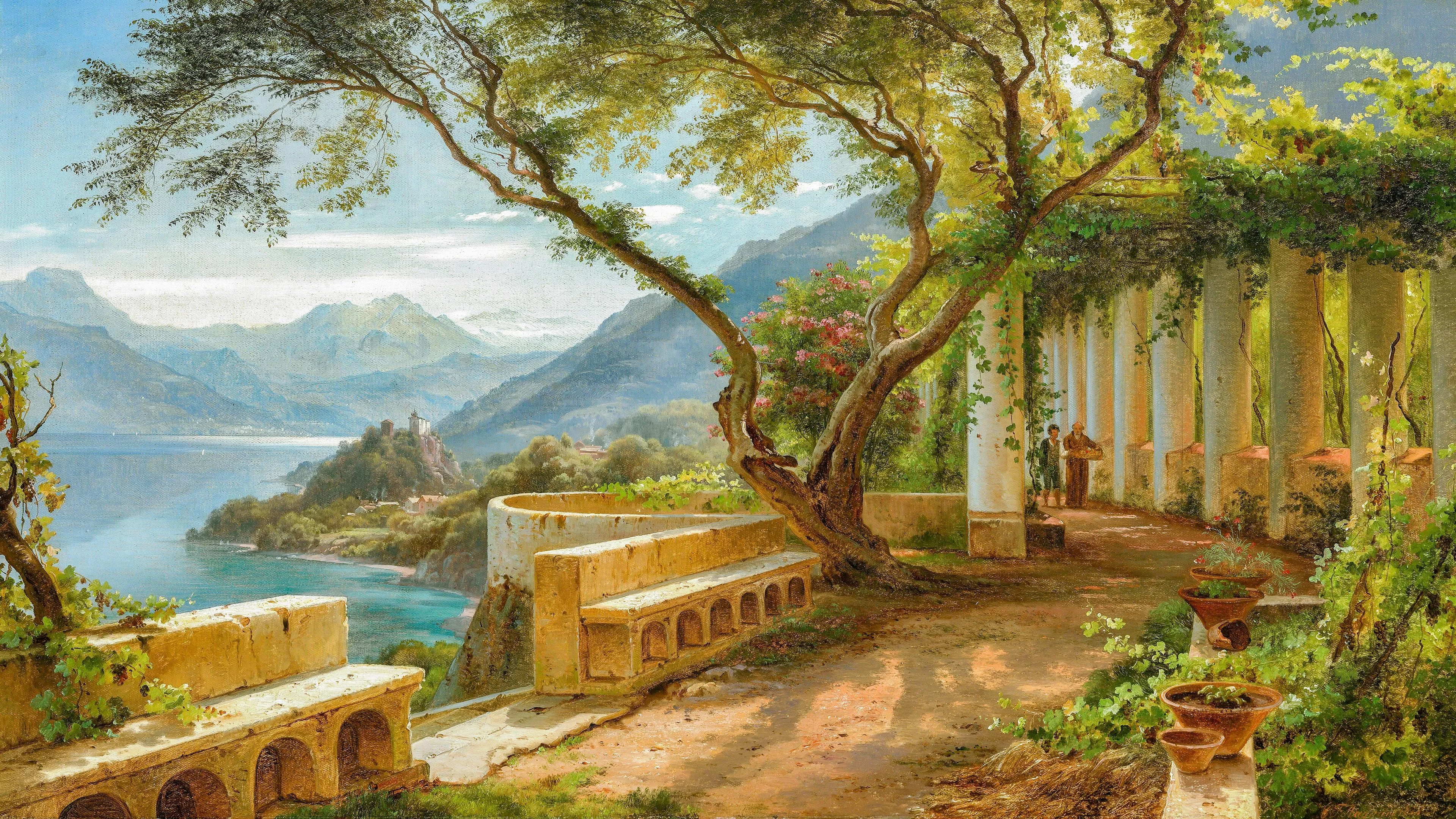 人物 卡尔 山脉 树木 植物 花卉 河流 自然 建筑 花瓶 绘画 4K壁纸