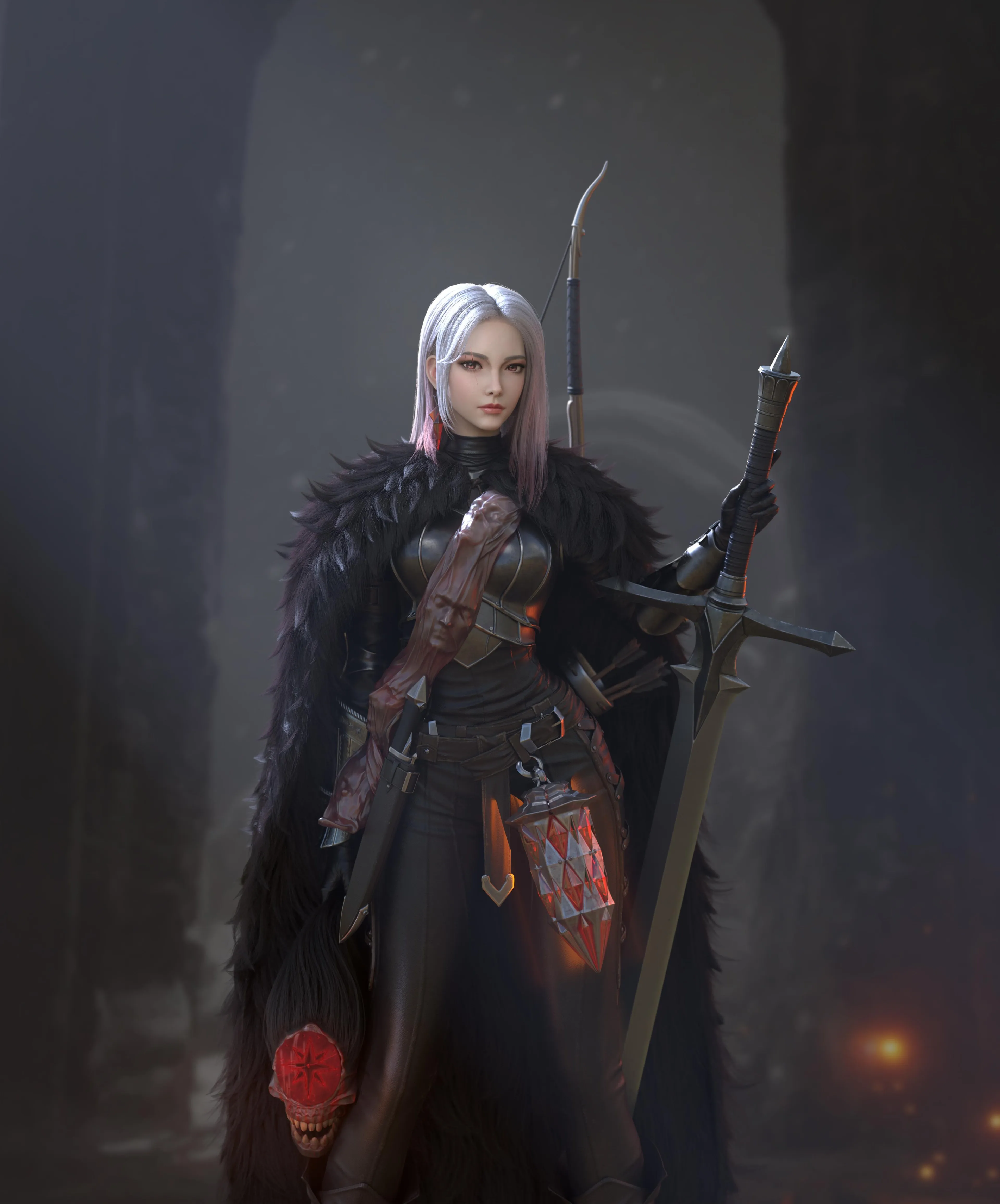 女人 战士 头 银发 大剑 毛皮 剑 武器 盔甲 手机壁纸 4K壁纸