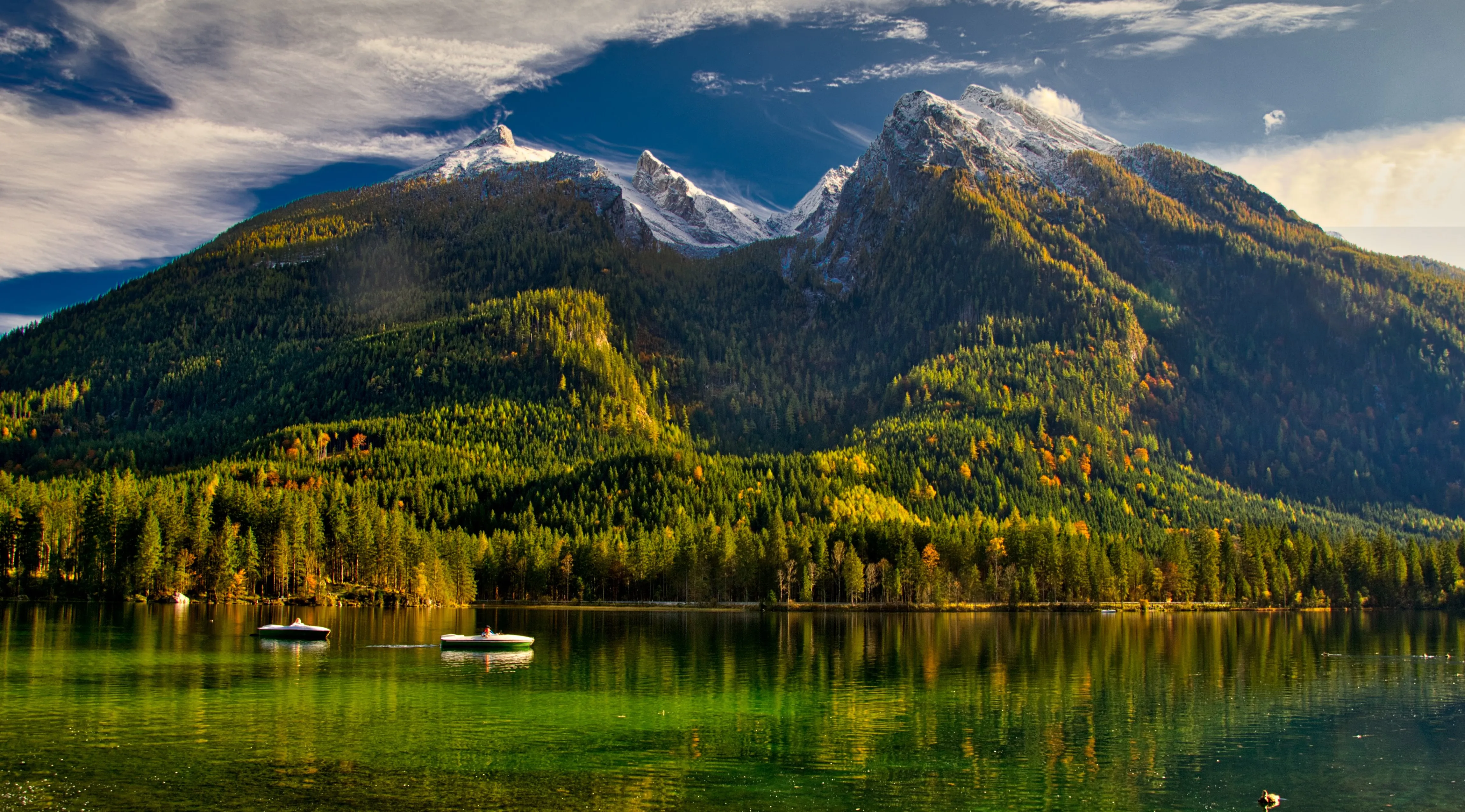 晶莹纯净美4K景观船 雪山 鸭子 电脑手机壁纸