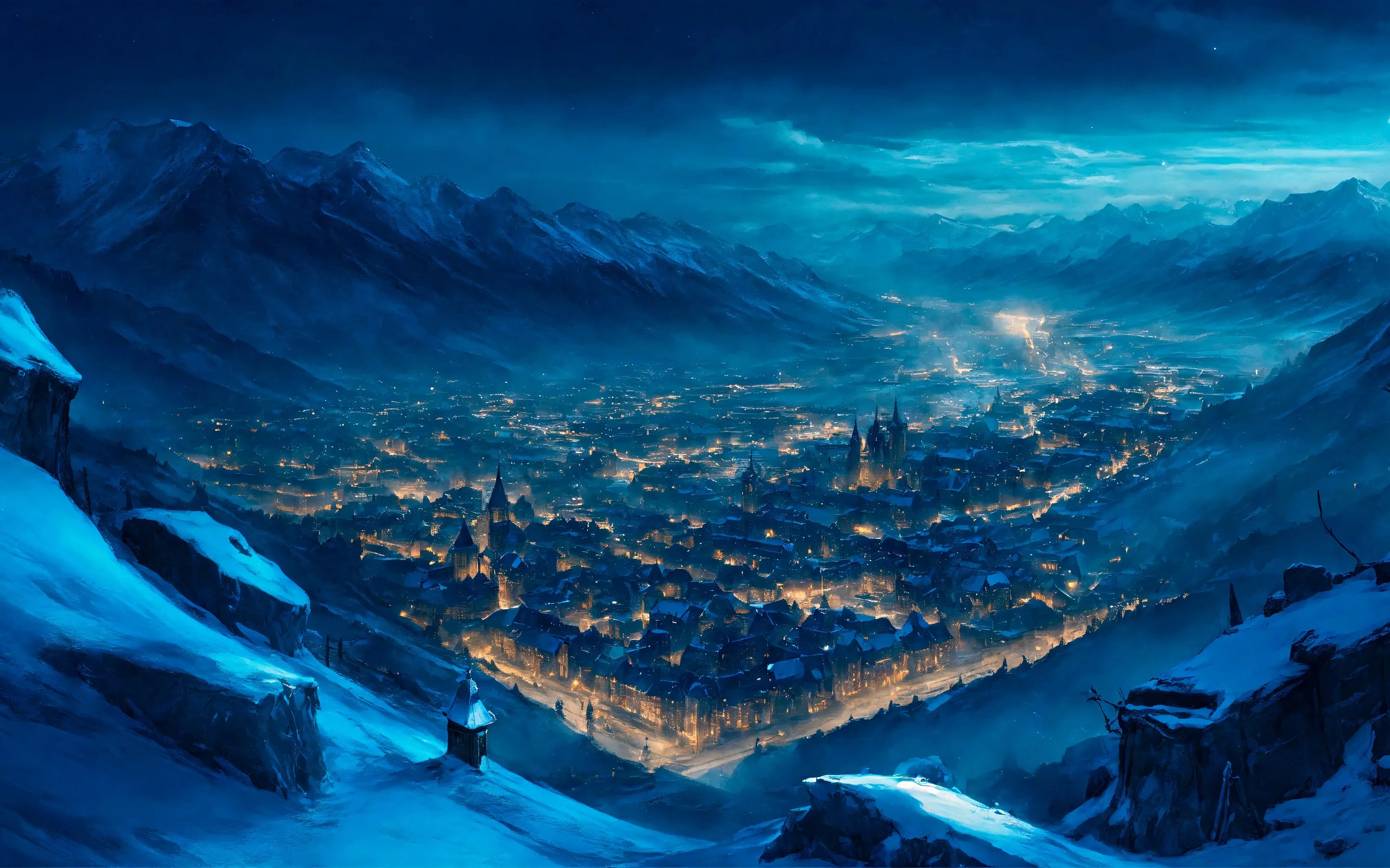 唯美清新诗风景山谷之城 唯美清新诗风景壁纸 2K壁纸 电脑手机壁纸