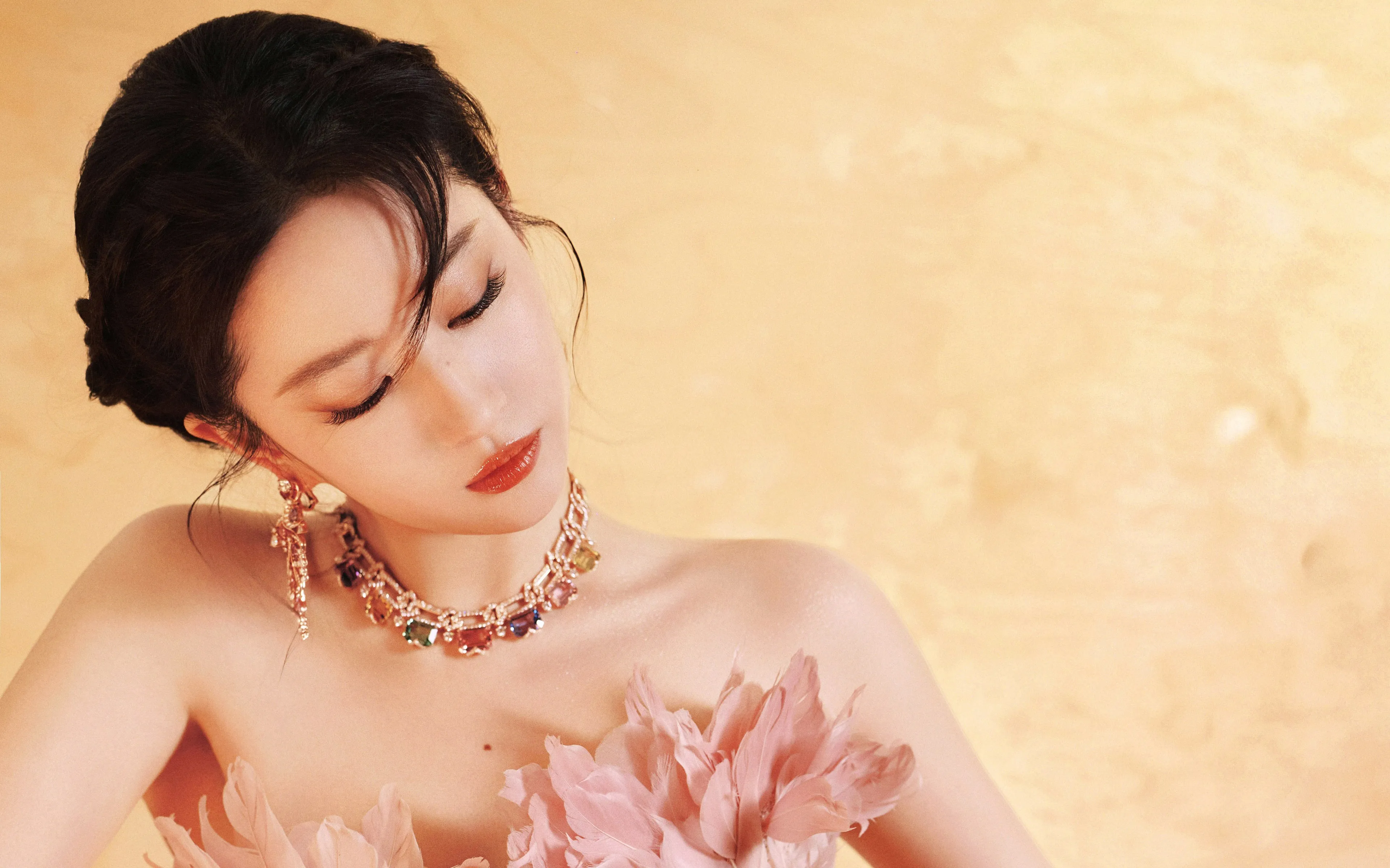 刘亦菲 梦幻粉 羽毛 礼服 4K壁纸