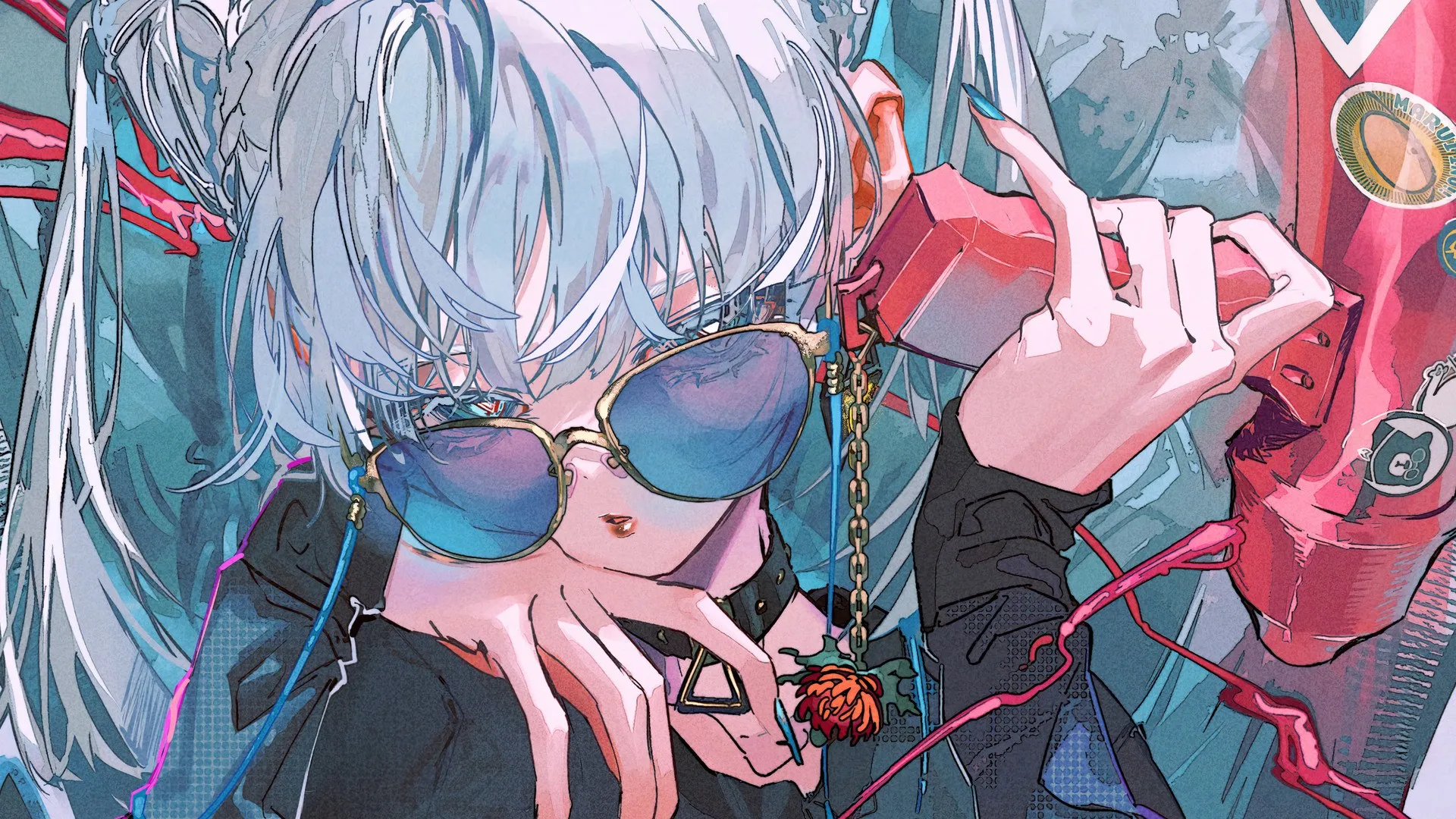 蓝色头发 动漫女孩 护目镜 AI艺术 太阳镜  电脑壁纸 4K壁纸