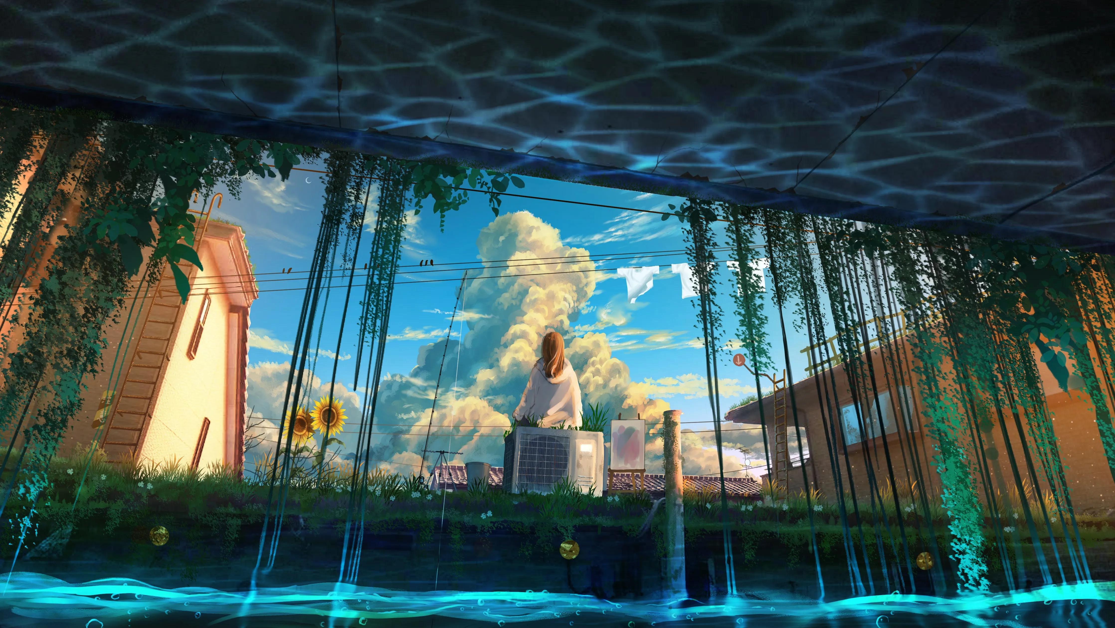金发 女性 长发 钓竿 天空 水流 云海 草地 空调 向日葵 洗衣 电线 绘画 葡萄藤 积云 4K壁纸