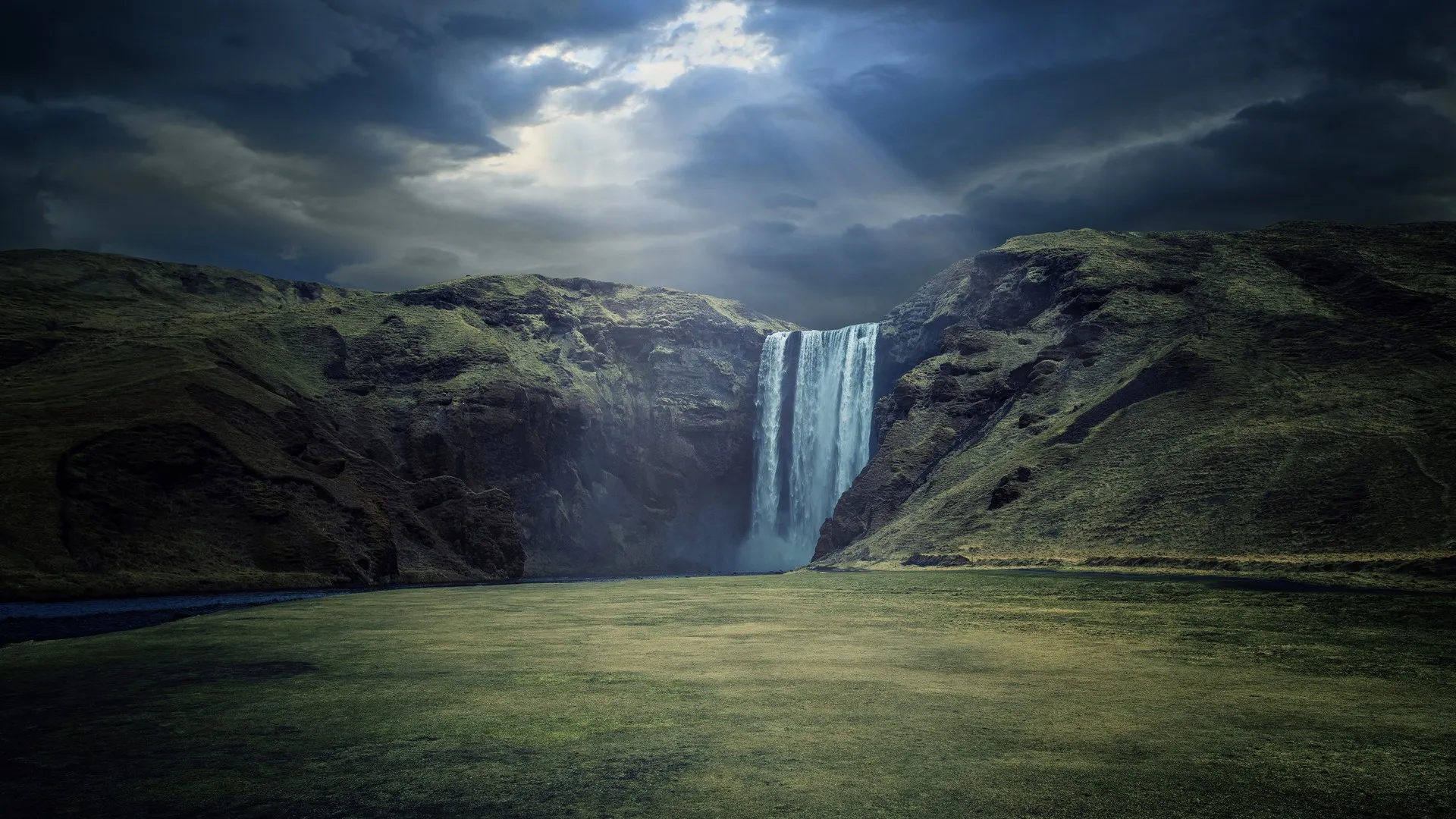 壮丽宏伟秀风景斯科加福斯瀑布 河流 云 电脑手机壁纸