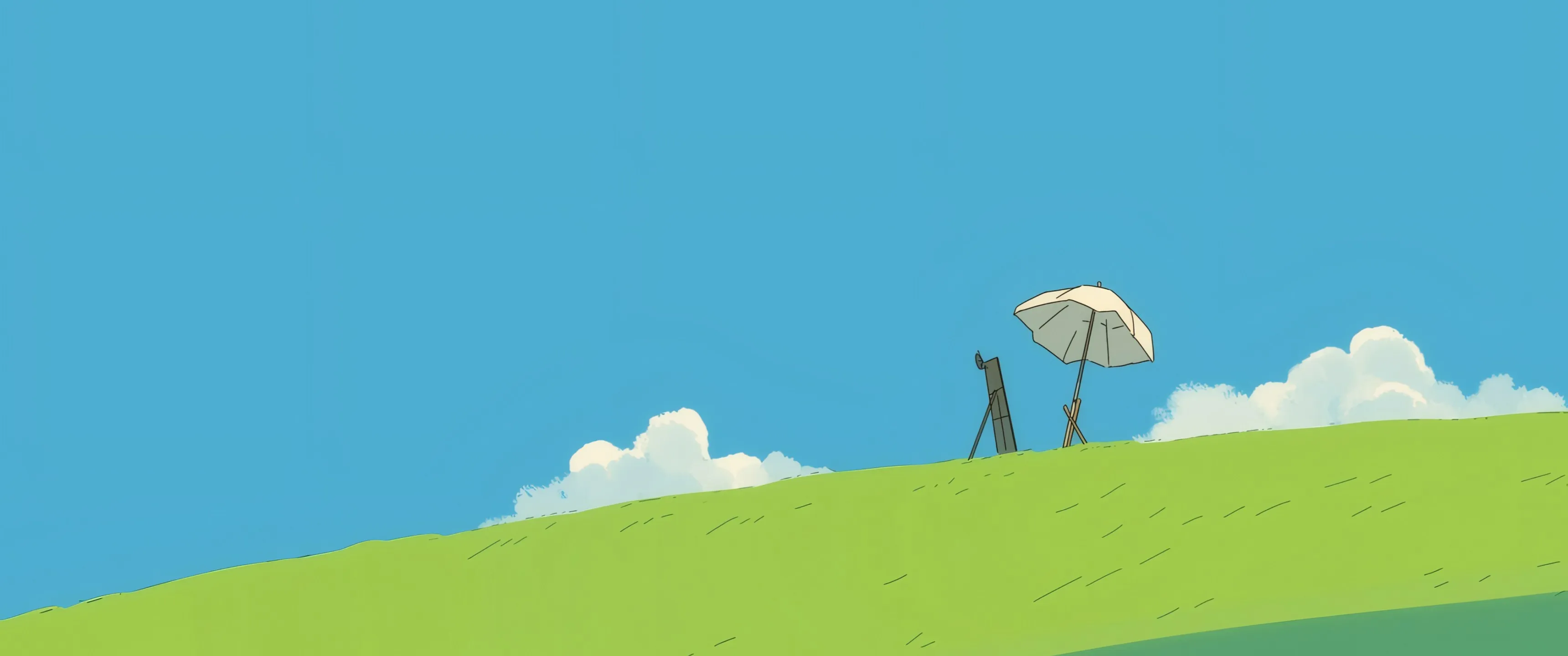 蓝色 草地 画板 简约风景 带鱼屏 2K壁纸
