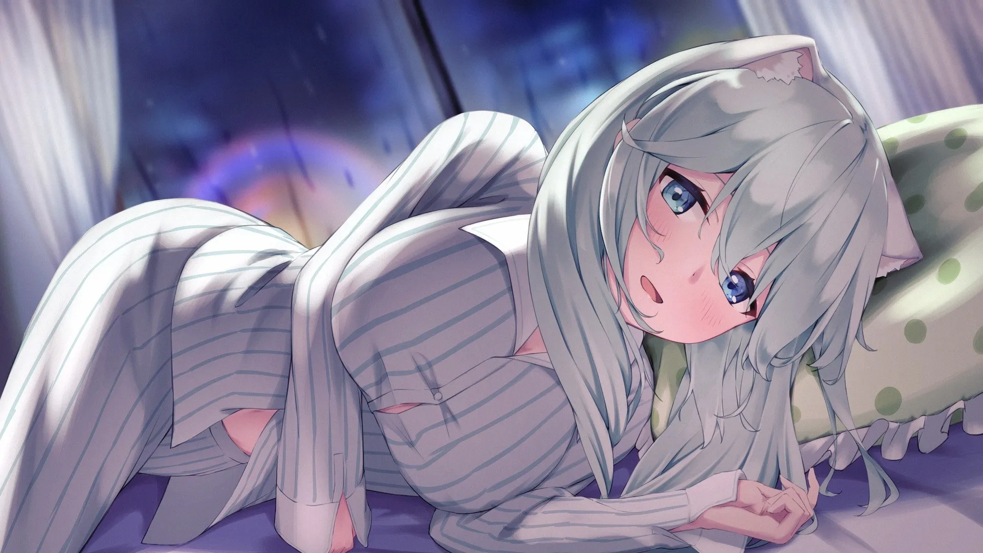 蓝眼睛 躺着 动漫 动漫女孩 动物的耳朵  电脑壁纸 4K壁纸
