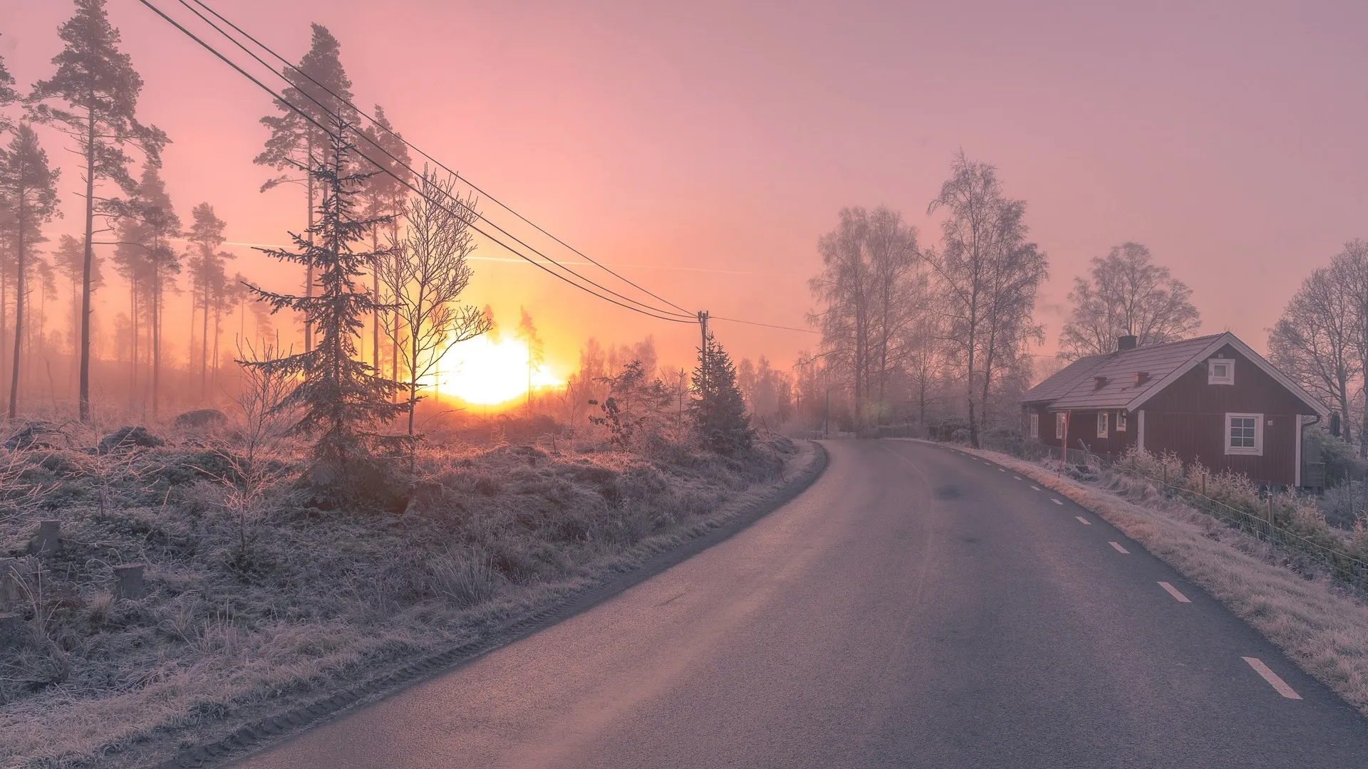 晶莹纯净美4K风景霜冻 沥青 冬天 电脑壁纸