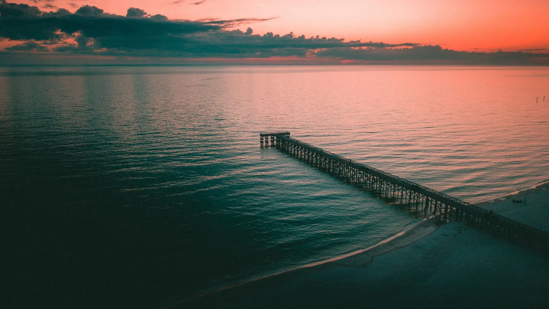 自然 水域 海滩 日落 码头 鸟瞰 风景  电脑壁纸 4K壁纸