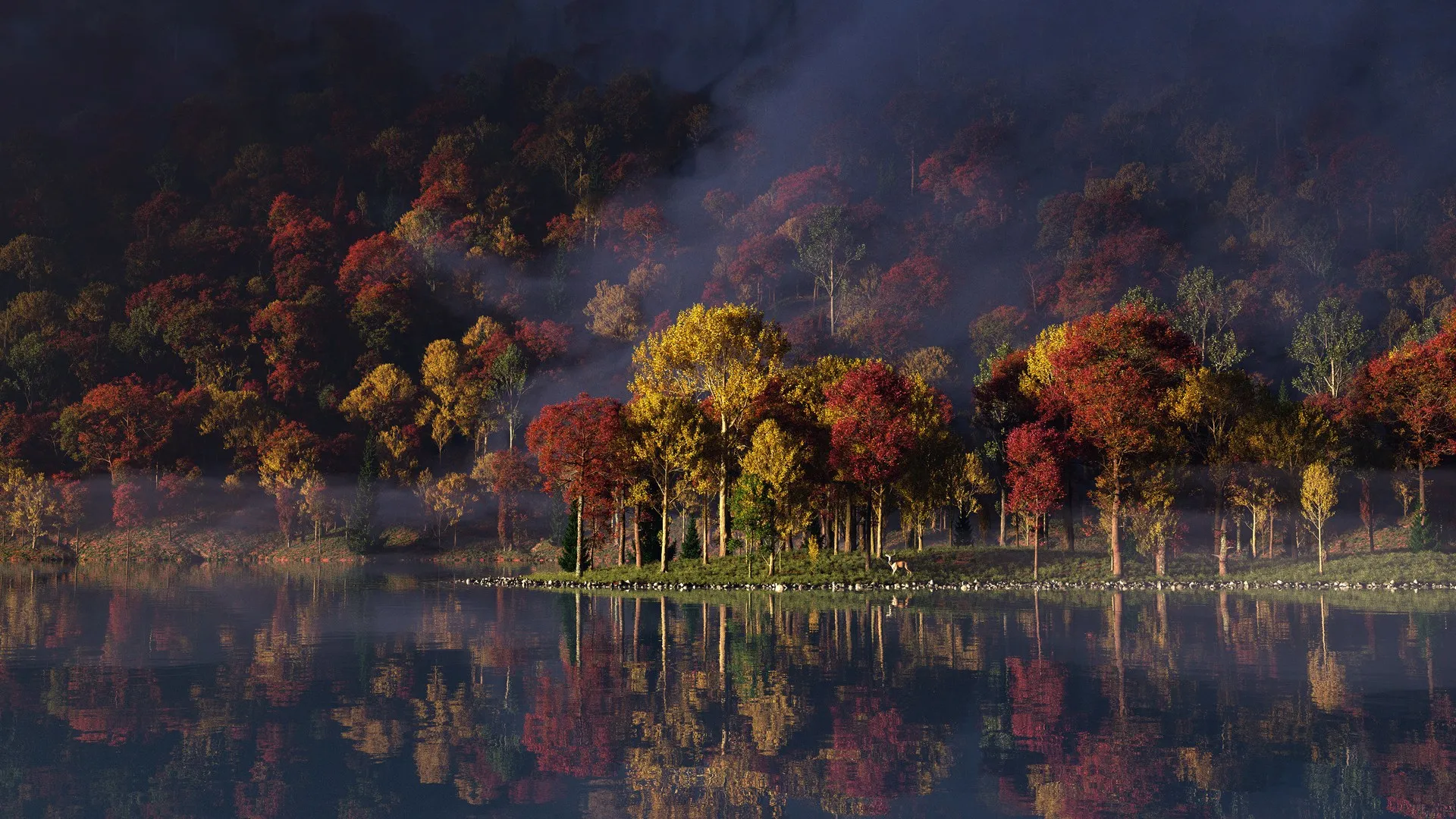 湖泊 树木 自然 风景 薄雾 反射 水  电脑壁纸 4K壁纸