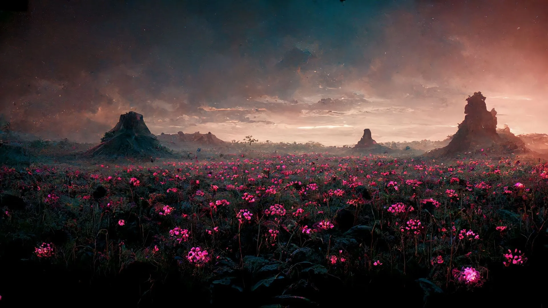 创意独特美4K艺术风景粉色的花 花 云 电脑壁纸