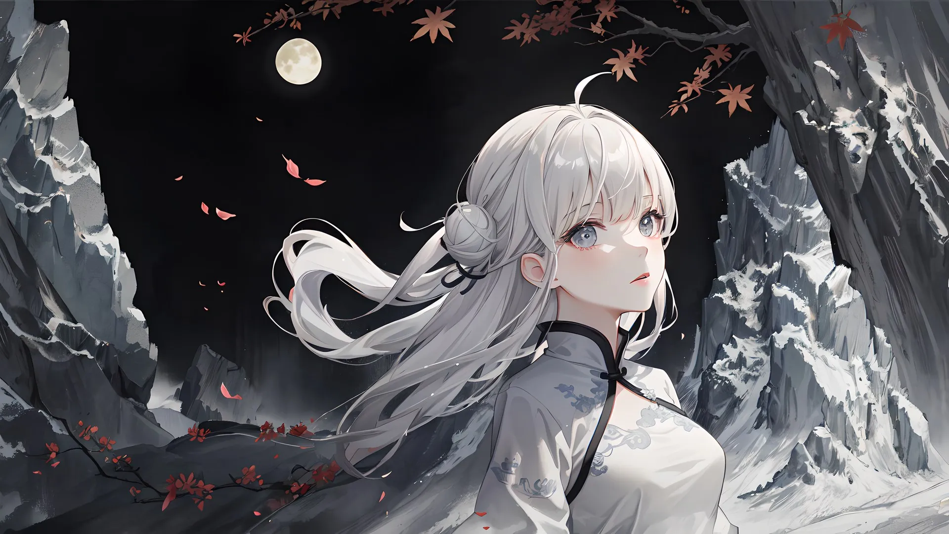 精美4K壁纸 动漫女孩枫叶电脑壁纸 高清壁纸下载