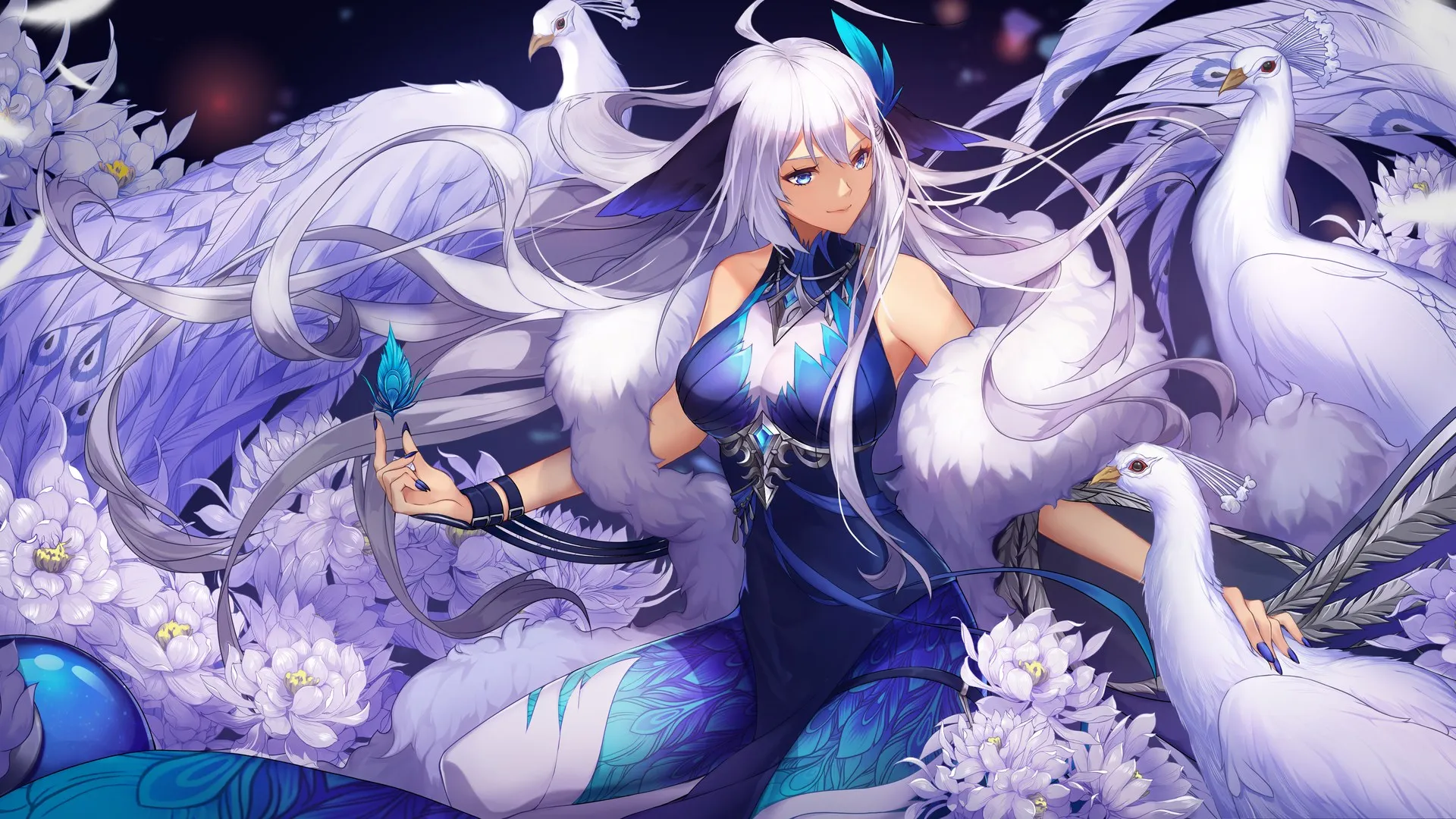 花云年 白发 长发 蓝眼睛 动漫 动漫女孩 小鸟 鲜花 服装  电脑壁纸 4K壁纸
