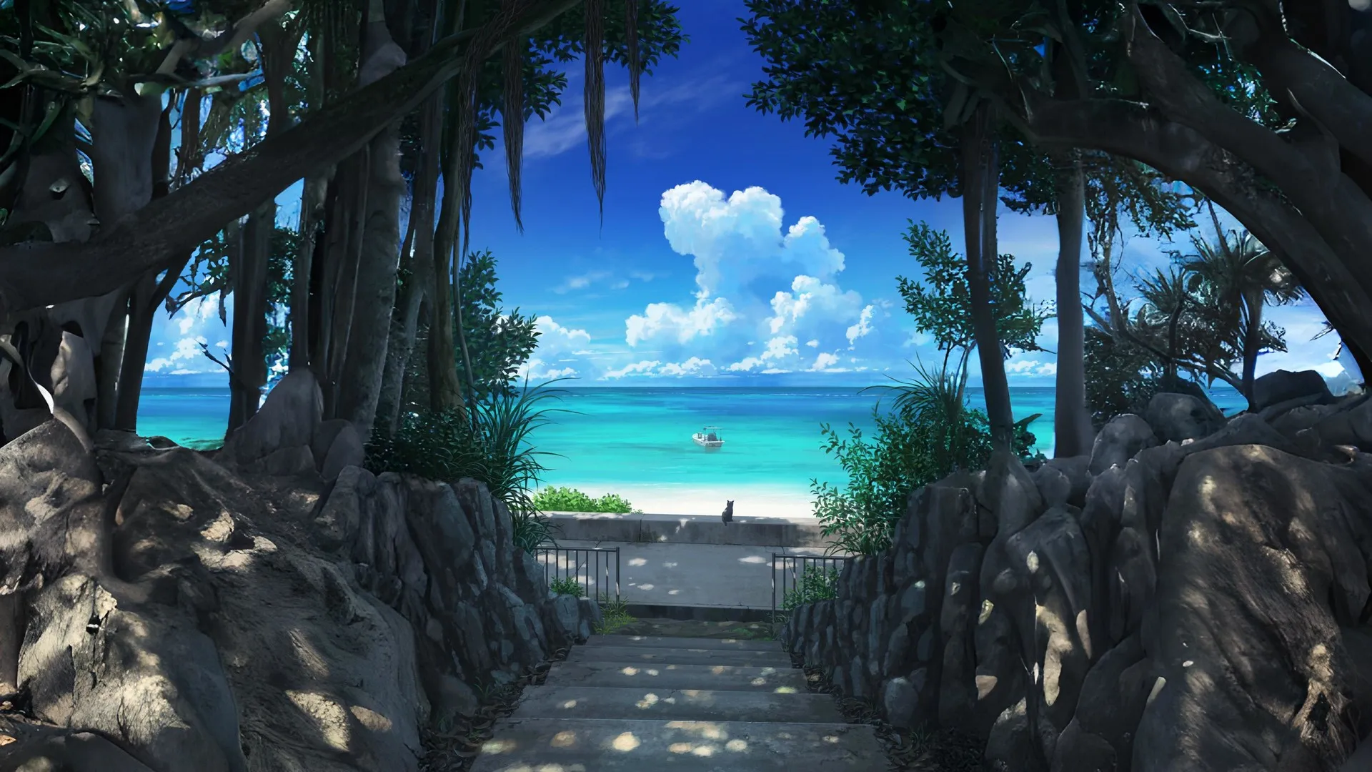 壮丽宏伟美4K风景楼梯 海滩 天蓝色 电脑壁纸