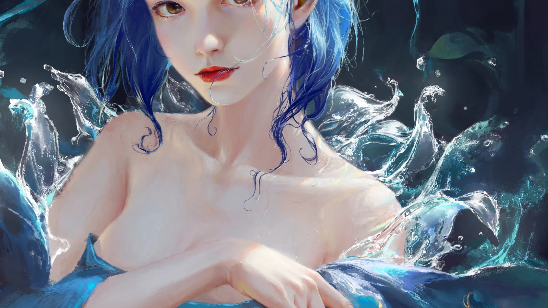 梦幻女孩 蓝头发 女人 手机壁纸 4K壁纸