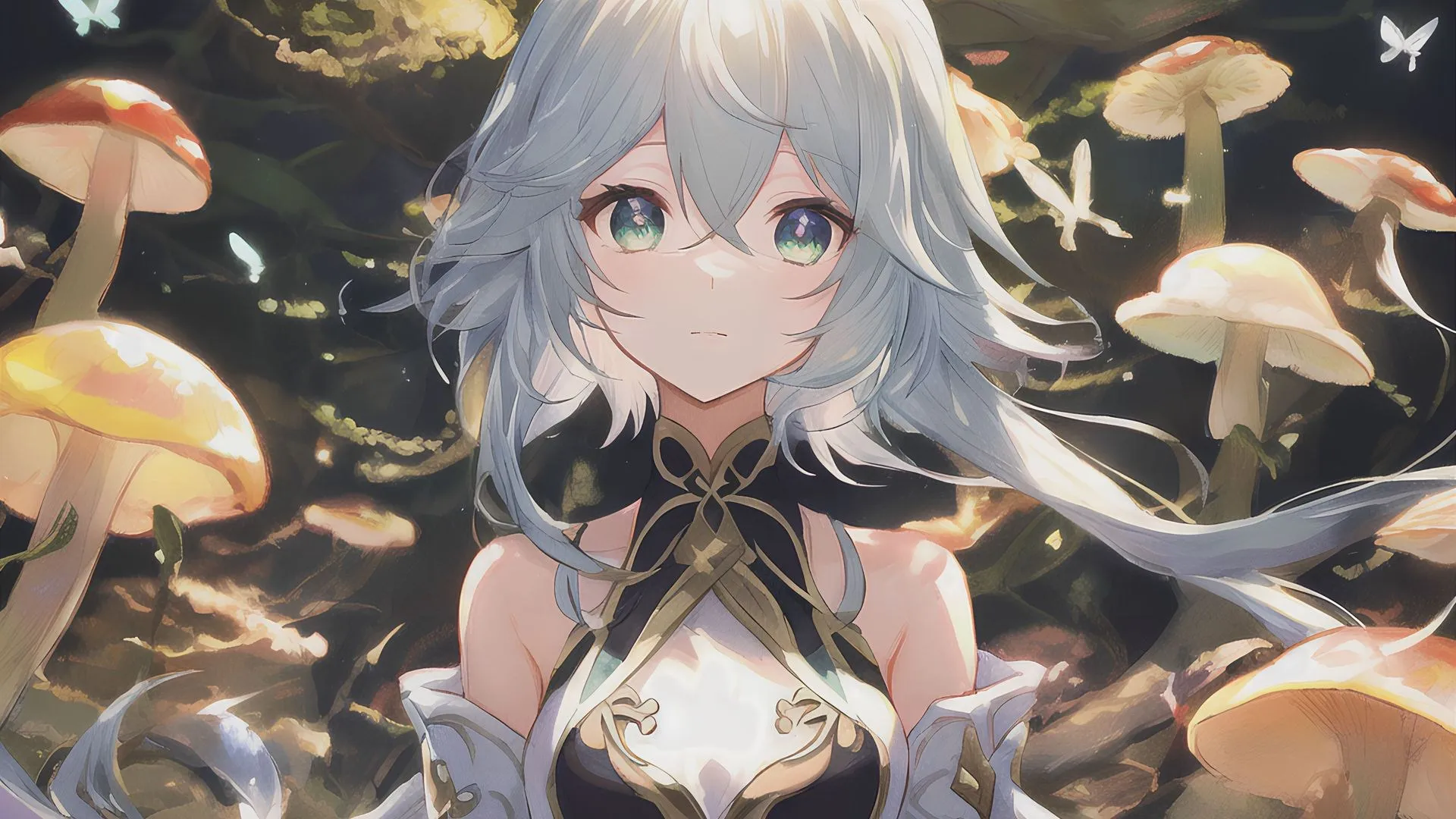 动漫 动漫女孩 人工智能艺术 原神 蘑菇 蝴蝶  电脑壁纸 4K壁纸
