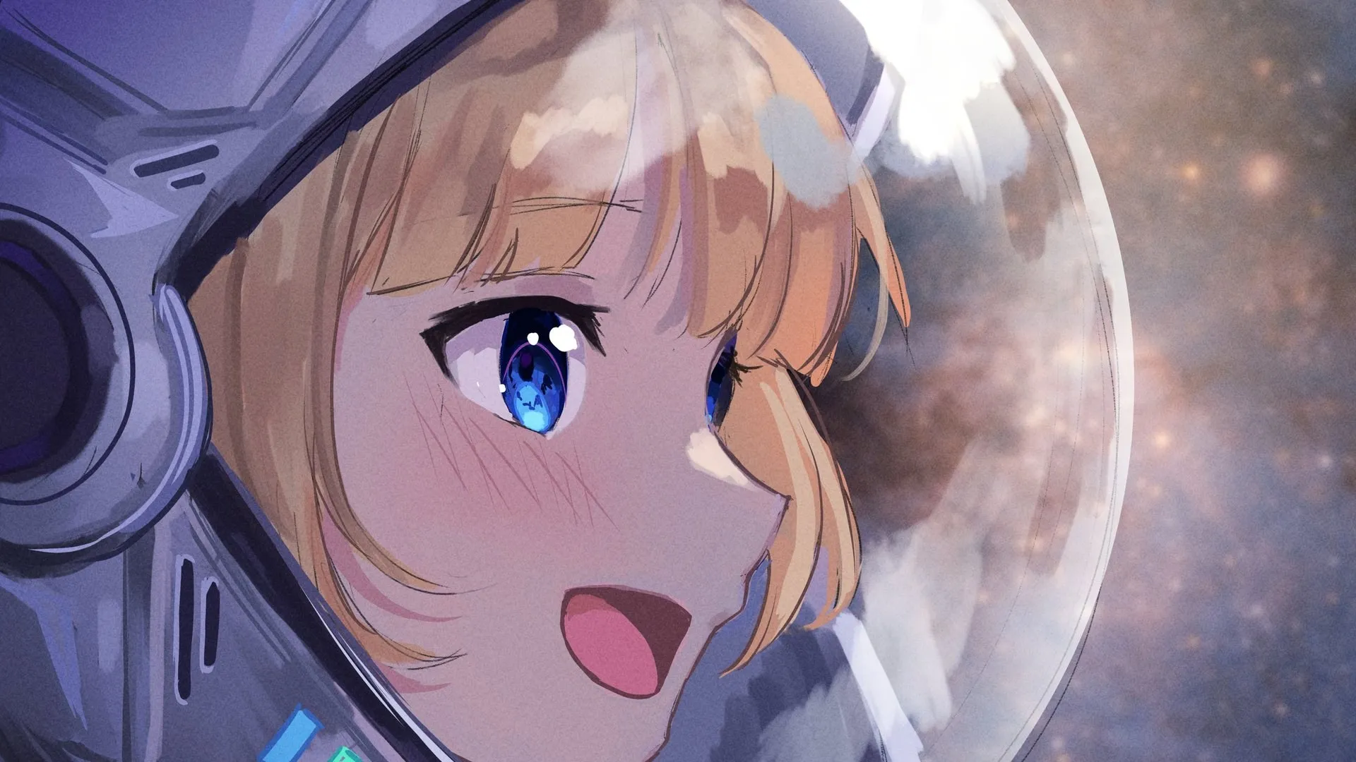 微笑 蓝眼睛 金发 日间艺术 动漫女孩 全息 华生阿米莉亚 宇航服  电脑壁纸 4K壁纸