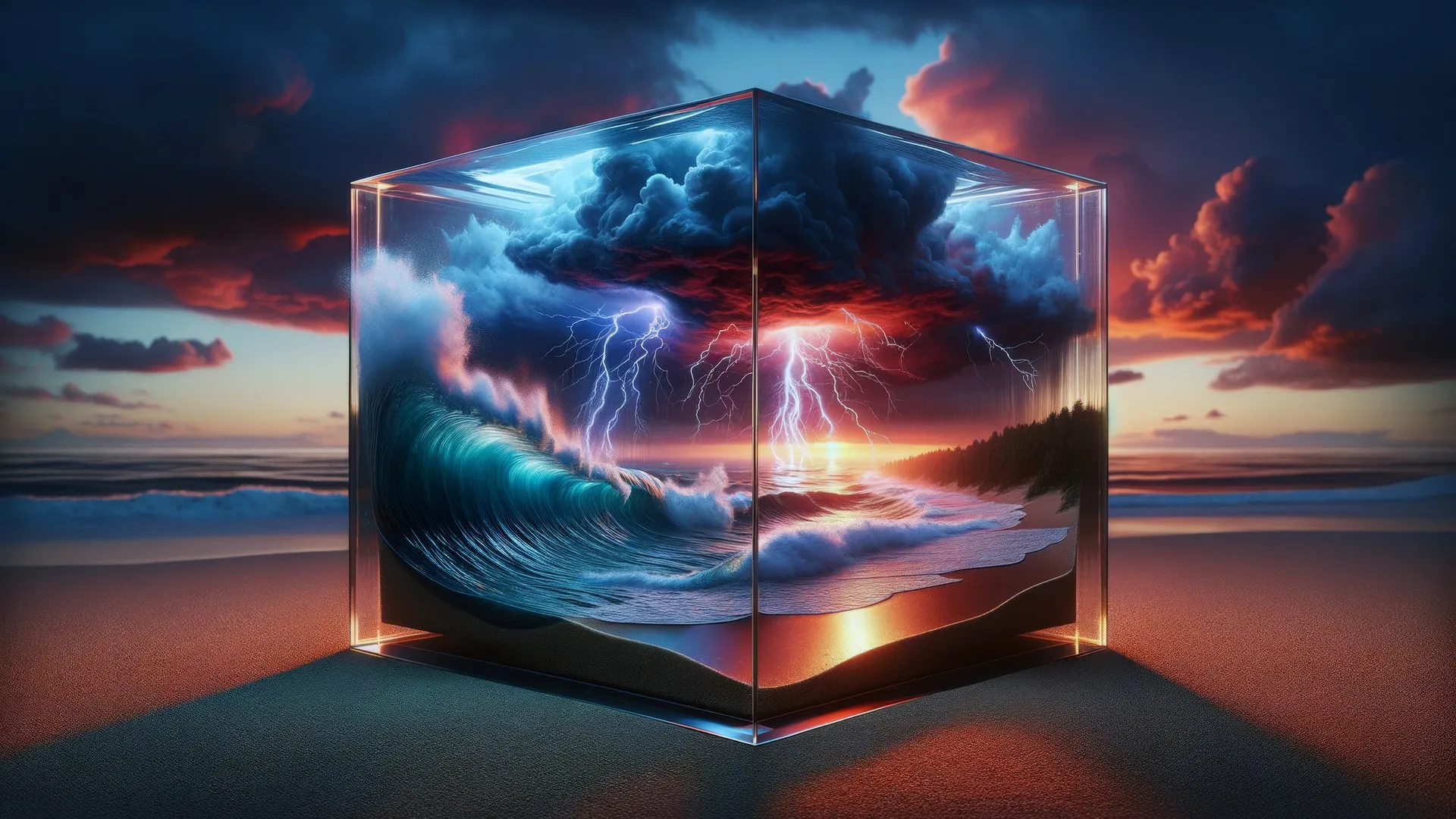 AI艺术 五颜六色 立方体 雷雨 海滩 电脑壁纸 4K壁纸
