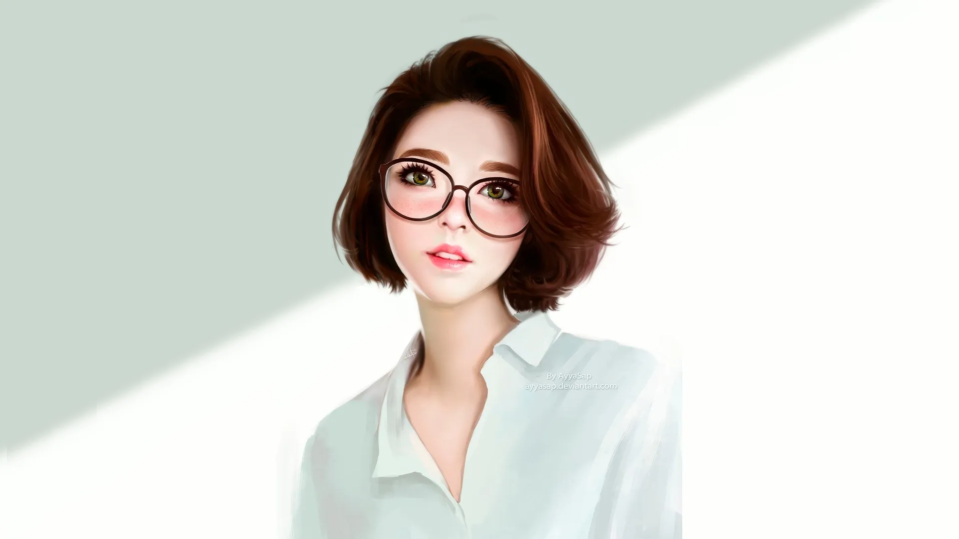 动漫女孩 动漫 简单背景 眼镜 玻璃  电脑壁纸 4K壁纸