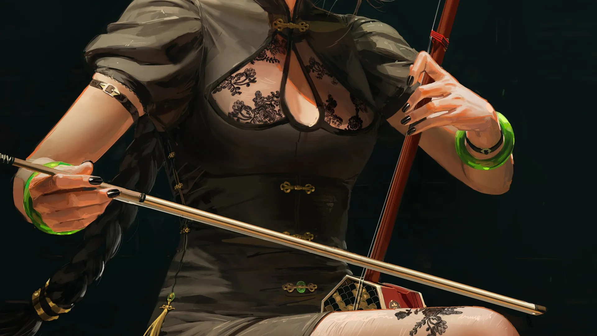 音乐家 AI艺术 插图 长袜 耳环 演奏 黑指甲 连衣裙 乐器 手机壁纸 4K壁纸