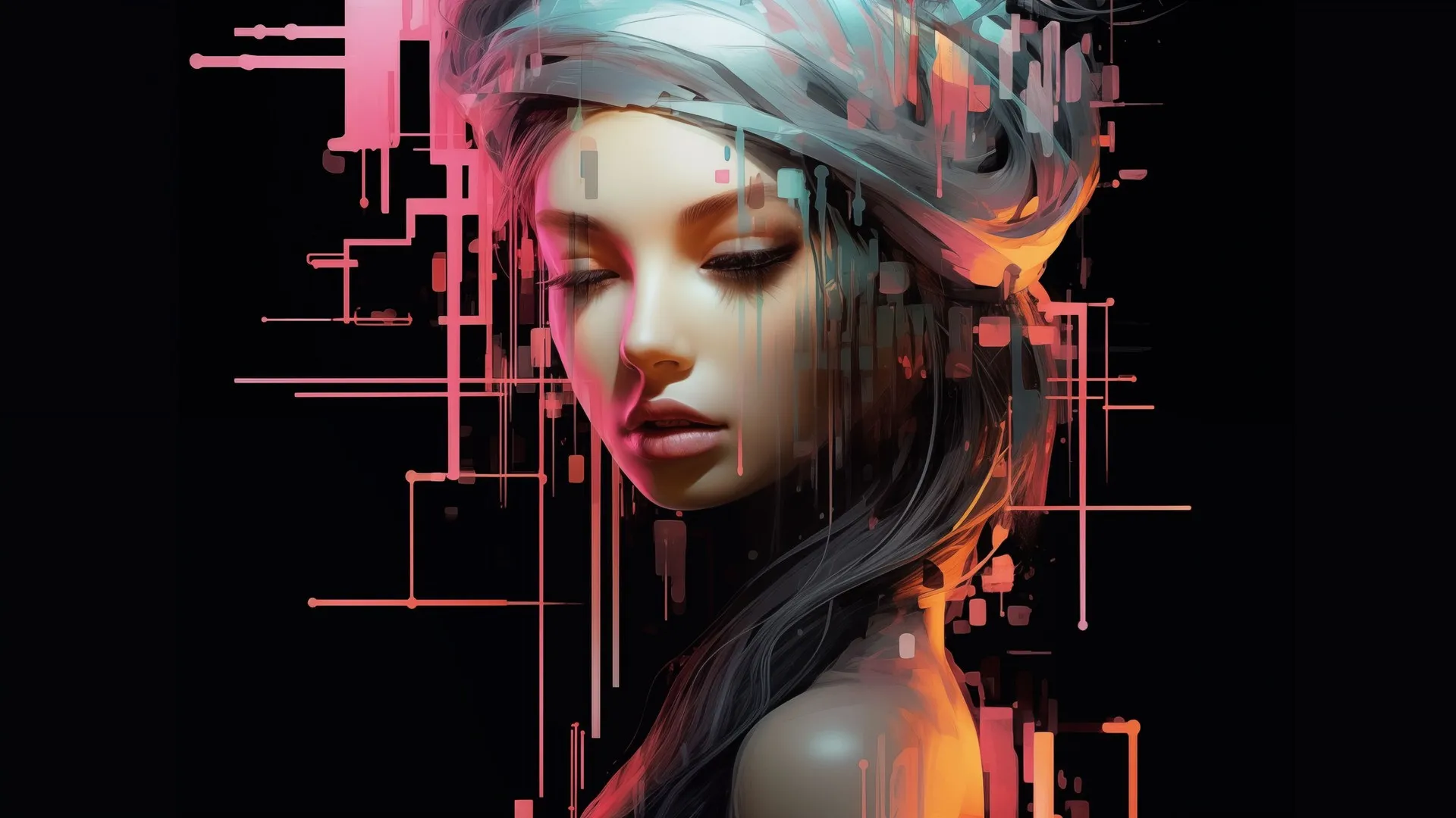 长头发 妇女 黑色背景 简单的背景 极简主义 数字艺术 电脑壁纸 4K壁纸