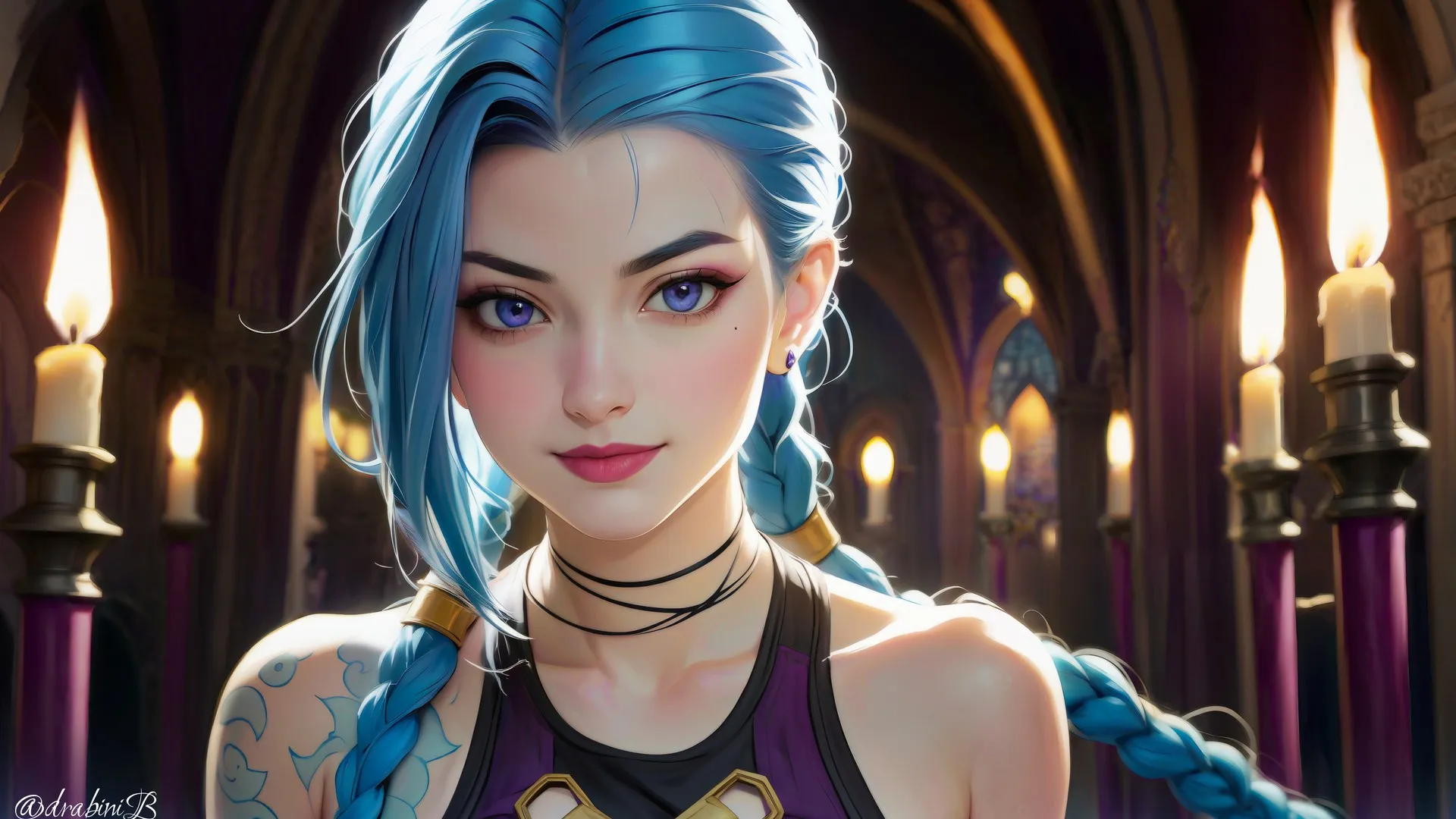 金(英雄联盟) 稳定扩散 AI艺术 双尾 肖像 蜡烛 电脑壁纸 4K壁纸